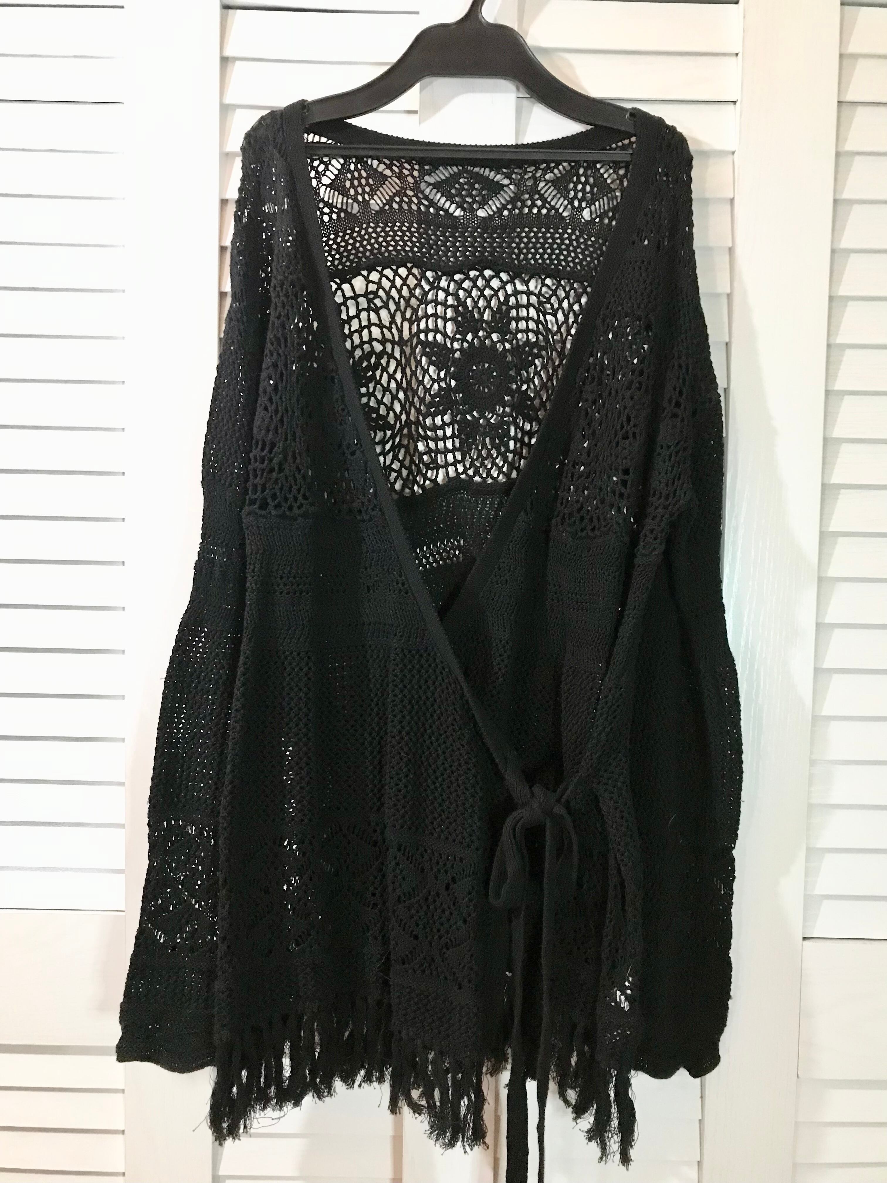 Ungrid フリンジ&カギ編みモチーフ カシュクールカーデ ブラック | お洋服屋さん 『GOKKO』