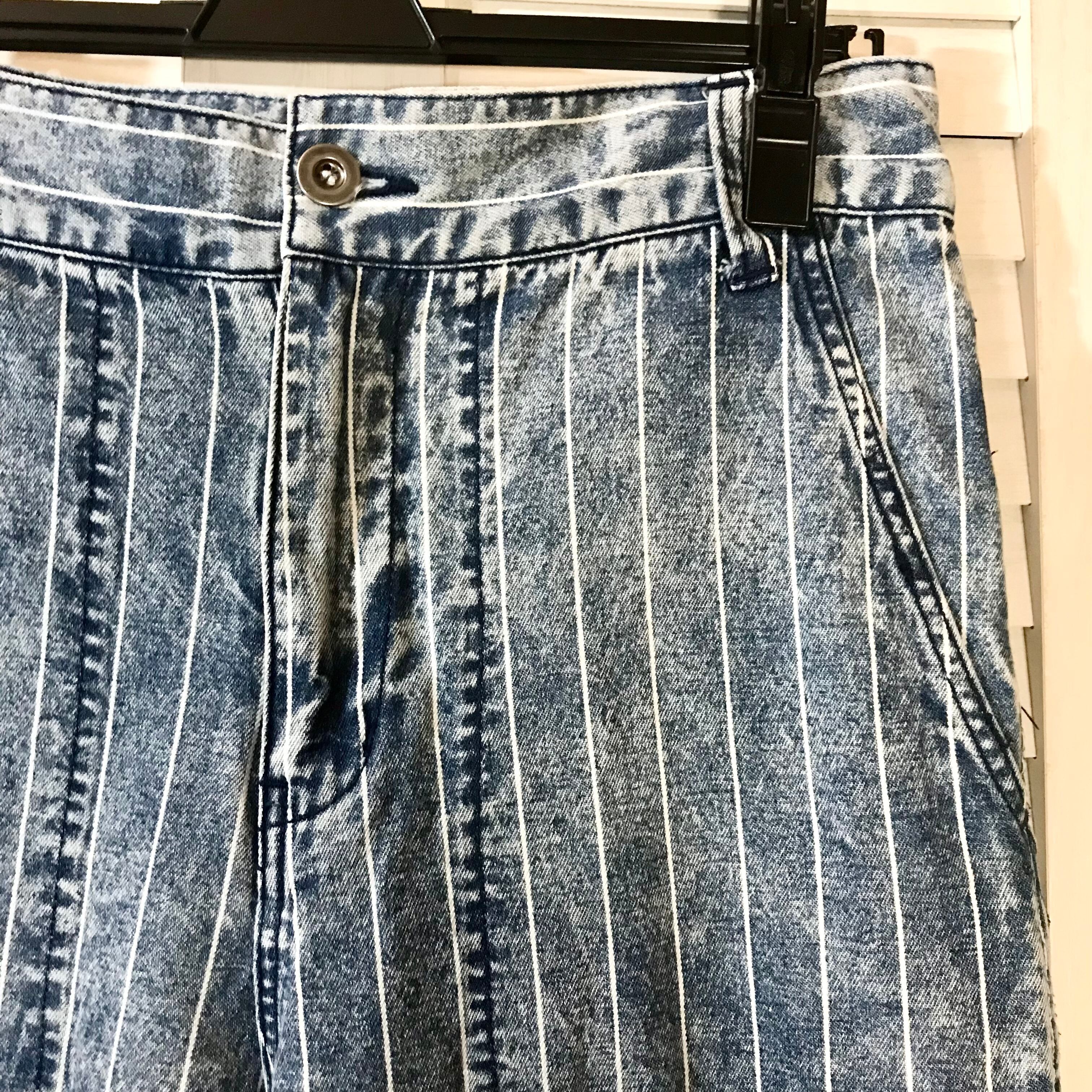 mercibeaucoup, ストーンウォッシュピンストライプデニム ベイカーパンツ風サルエルパンツ