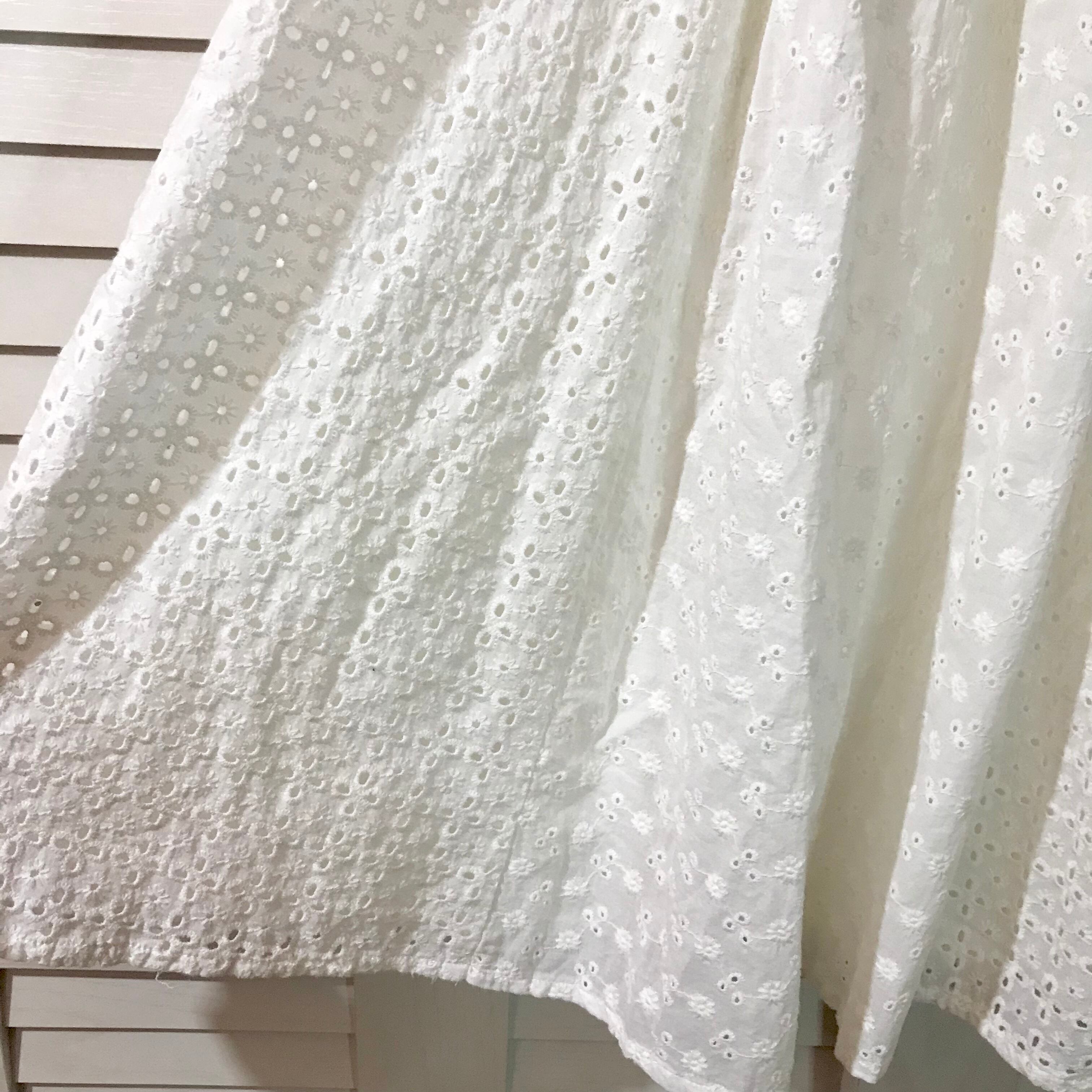 BEAMS BOY コットンレース パッチワーク フレアーギャザースカート オフホワイト