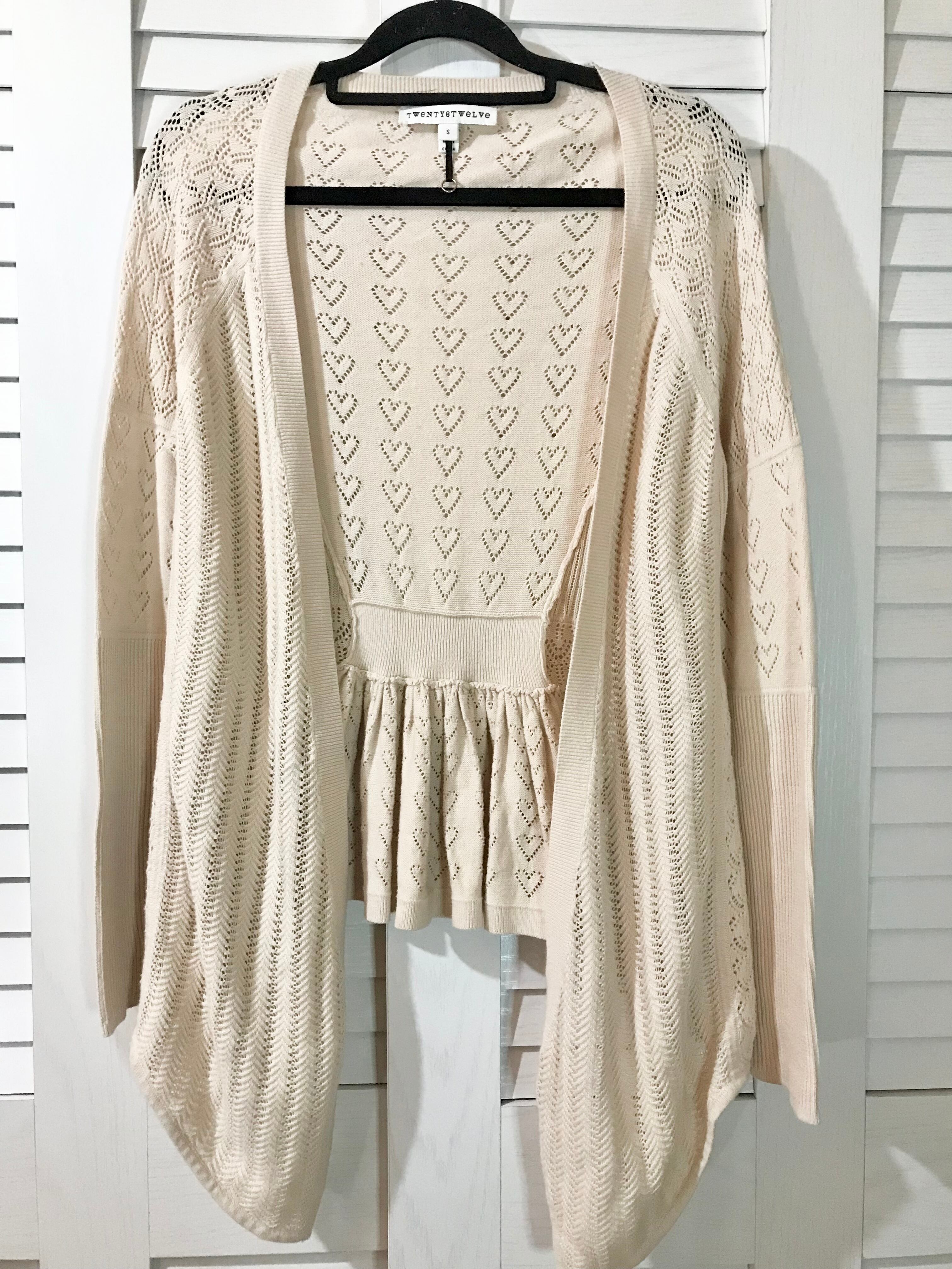 TWENTY8TWELVE 針抜きハート柄 コットンニットデザインカーデ ライトベージュ