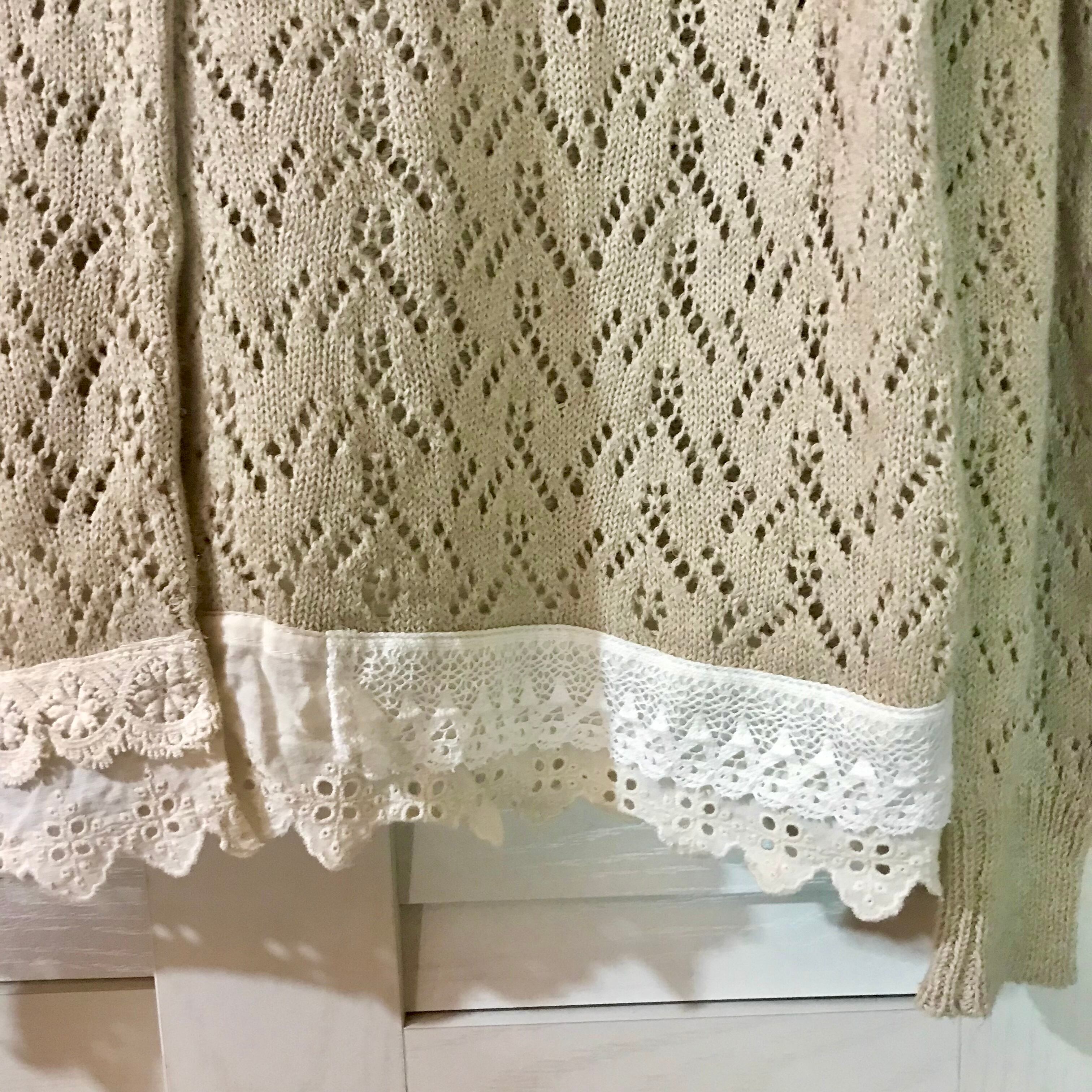 Samansa mos2 透かし編みコットンレースデザインカーデ ライトベージュ