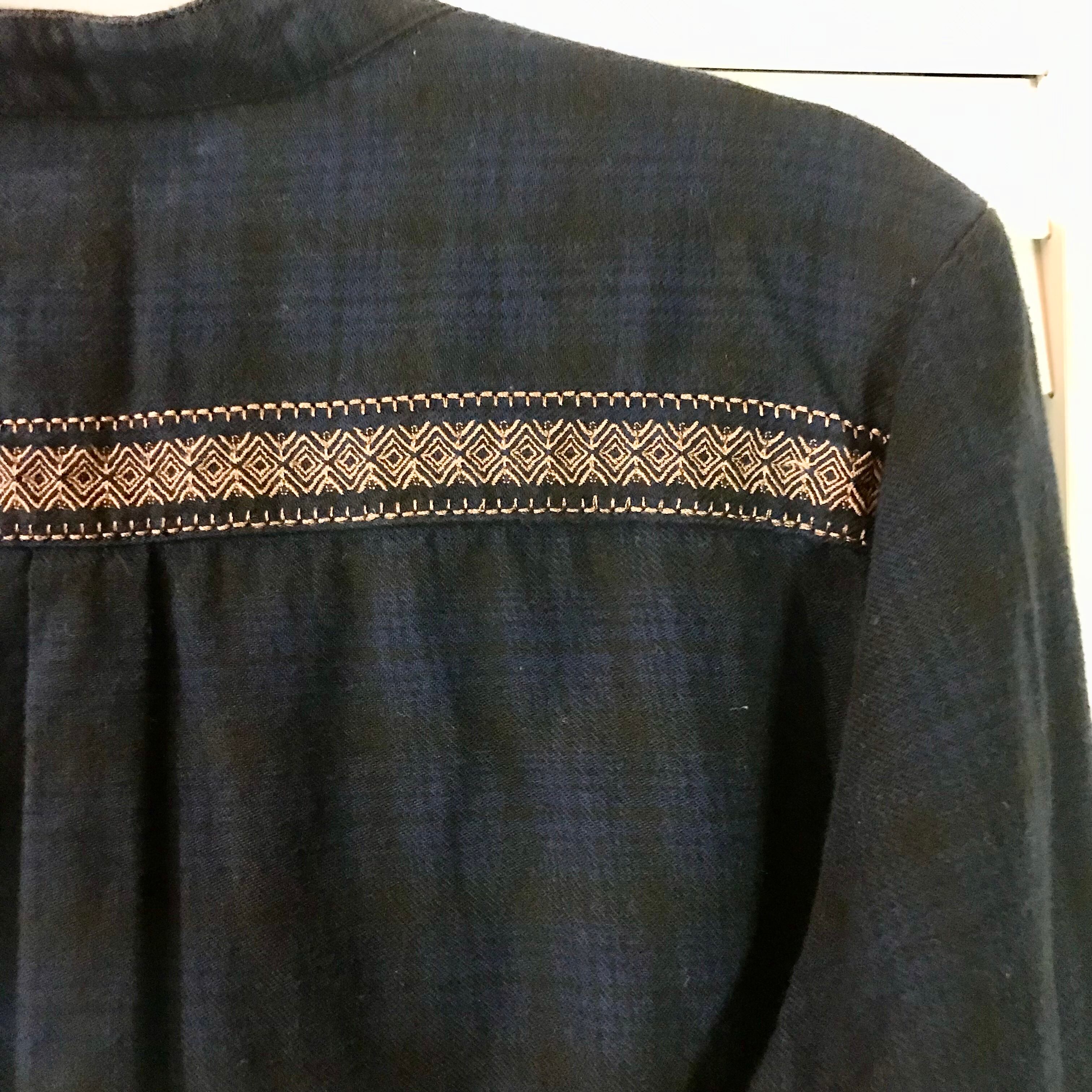 Eddie Bauer チロリアン刺繍のタータンチェック コットンチュニックシャツ ネイビー×グリーン