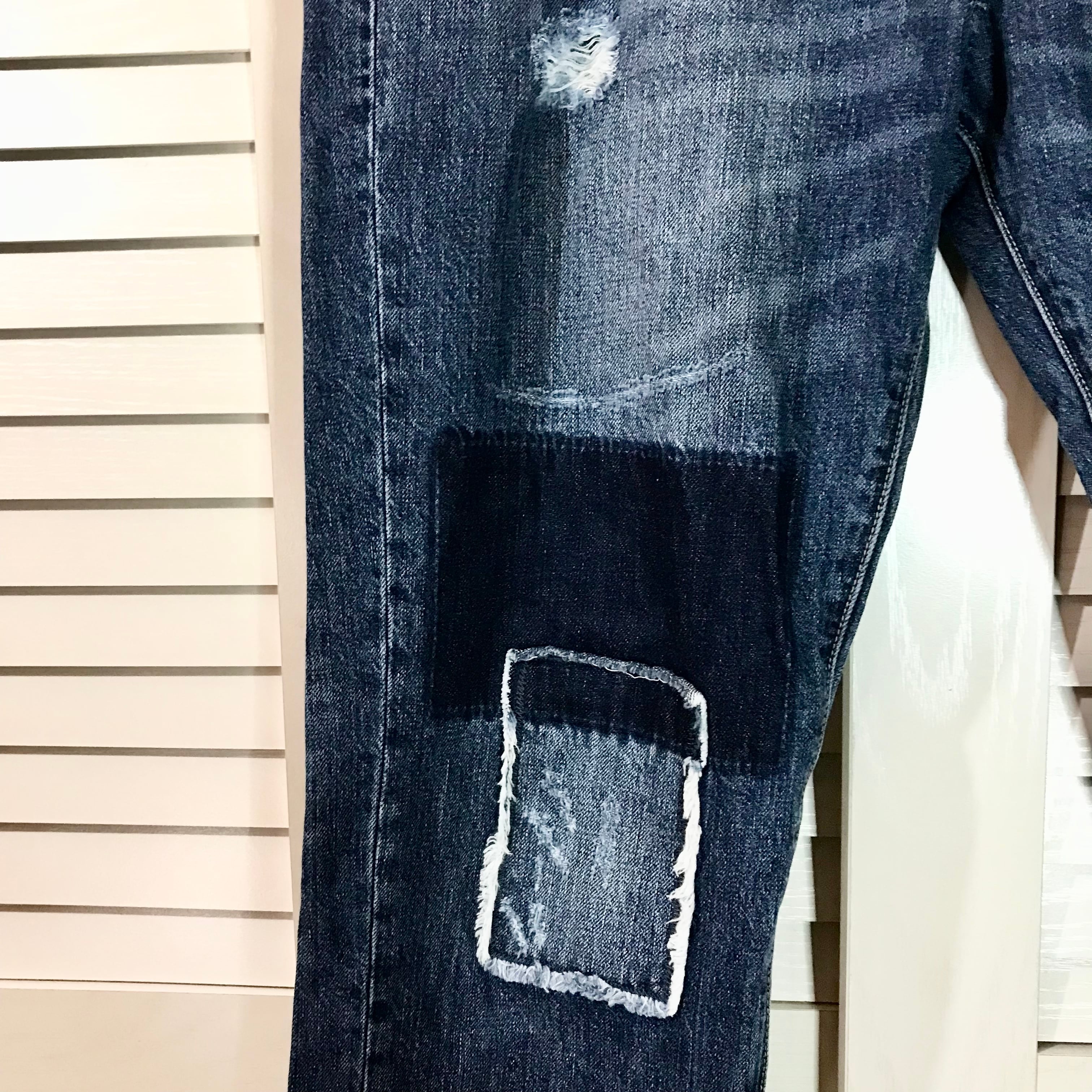 GLOBAL WORK プラスサイズ リメイクデザイン インディゴデニム ストレートジーンズ