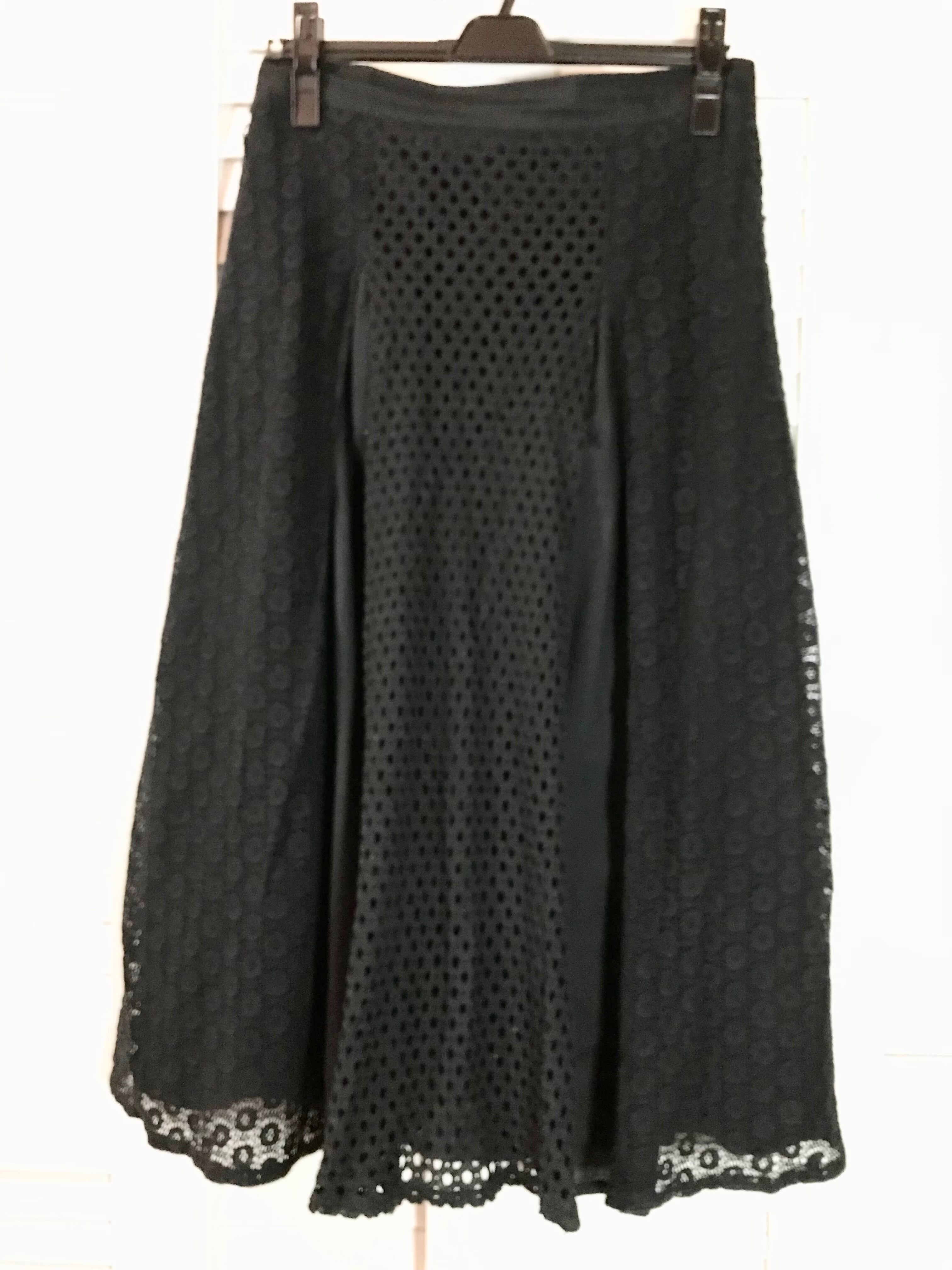 IEDIT コットンレースパッチワーク ボックスプリーツフレアースカート ブラック