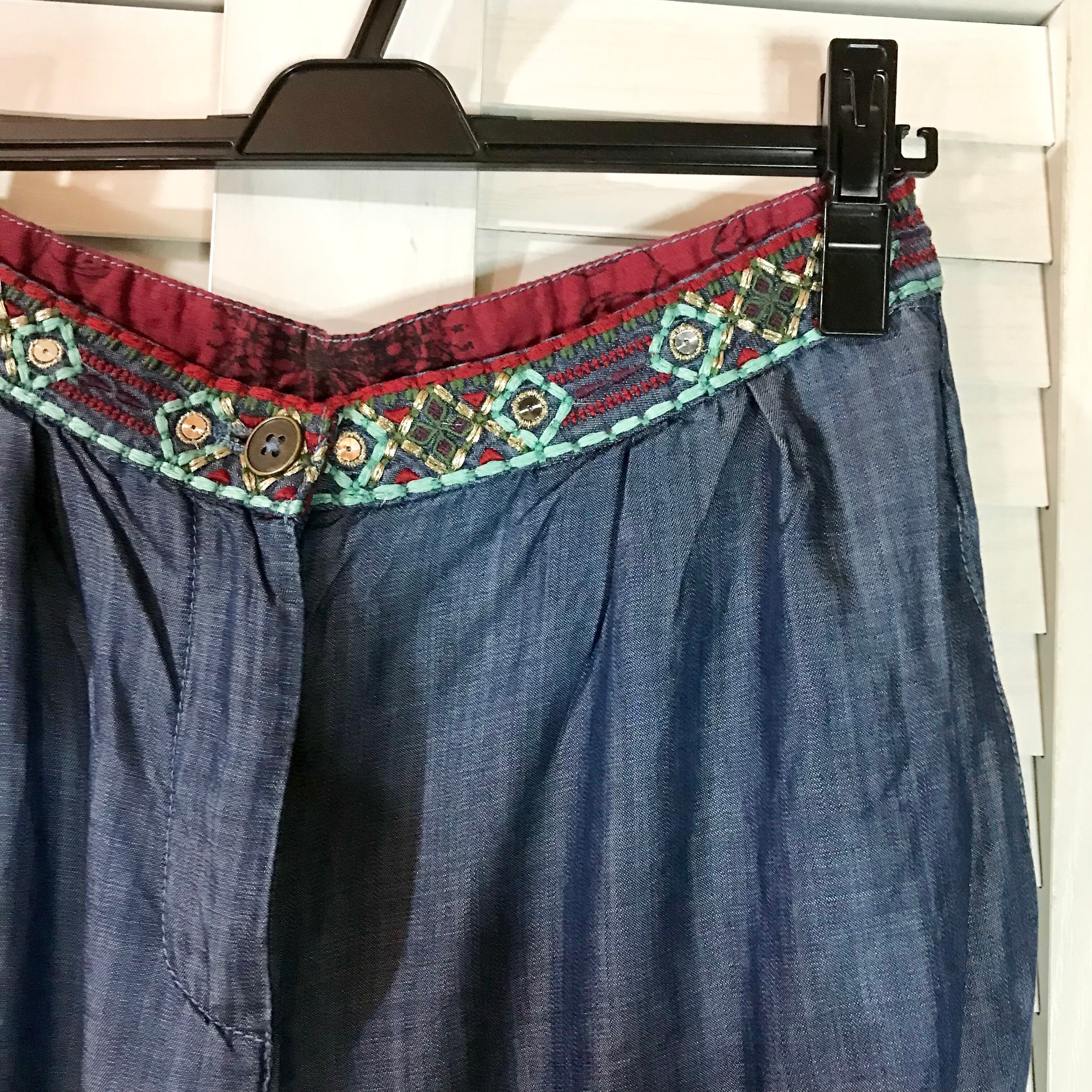 Desigual 激レアインポートモデル!オリエンタル刺繍 レーヨンダンガリーワイドパンツ
