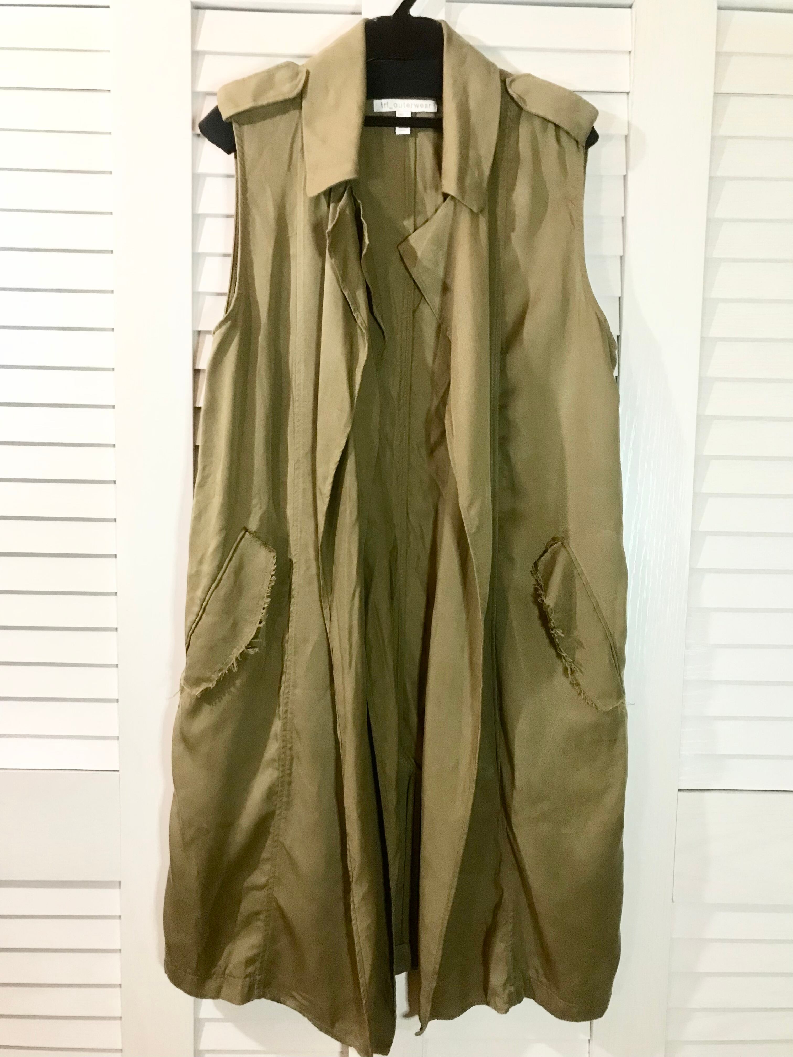 trf_outerwear レーヨントレンチ デザインロングジレ カーキベージュ | お洋服屋さん 『GOKKO』
