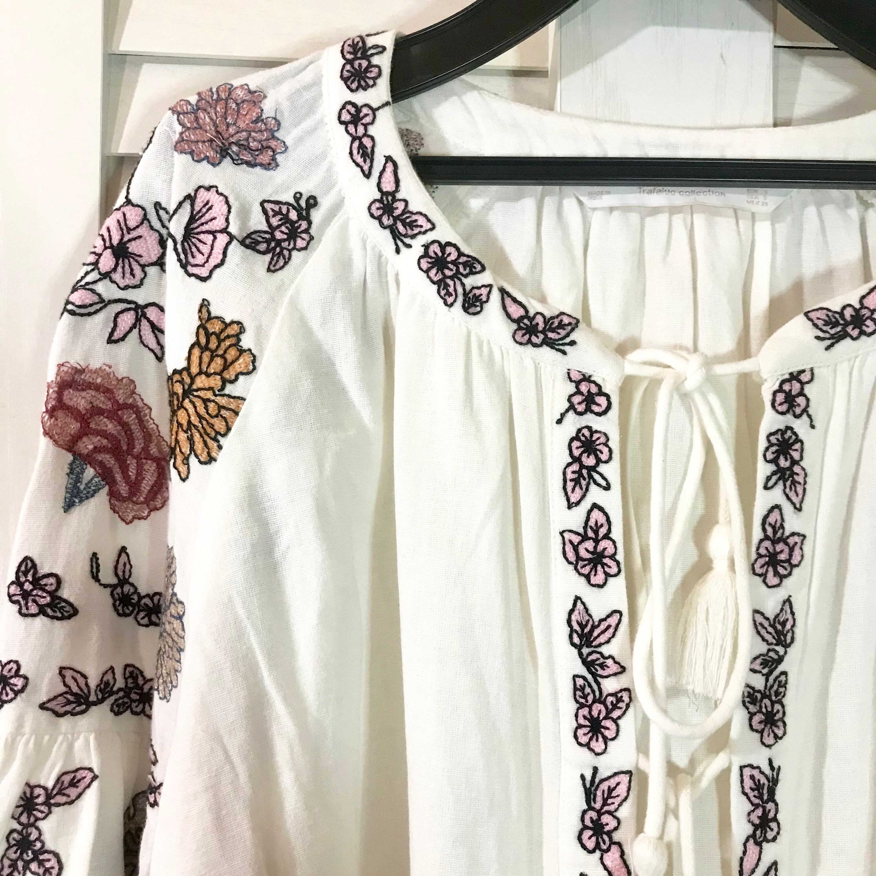 嵩亞摩さん専用◎ZARA ダブルガーゼ ボタニカル刺繍 ボリュームスリーブ オーバーサイズ ショート丈カーデ オフホワイト