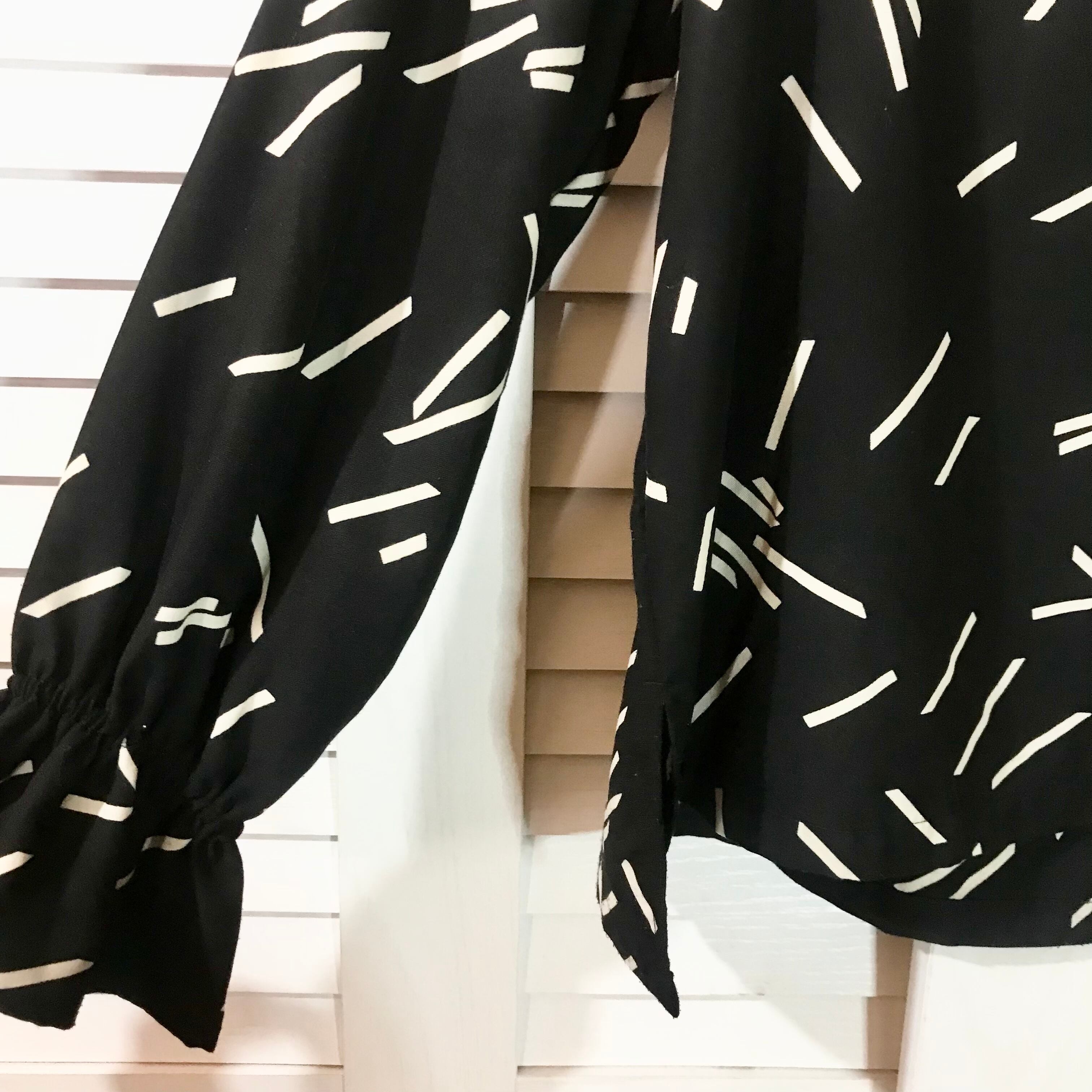 Willful by lipstar モノトーン レトロジオメトリック柄 キャンディースリーブブラウス ブラック