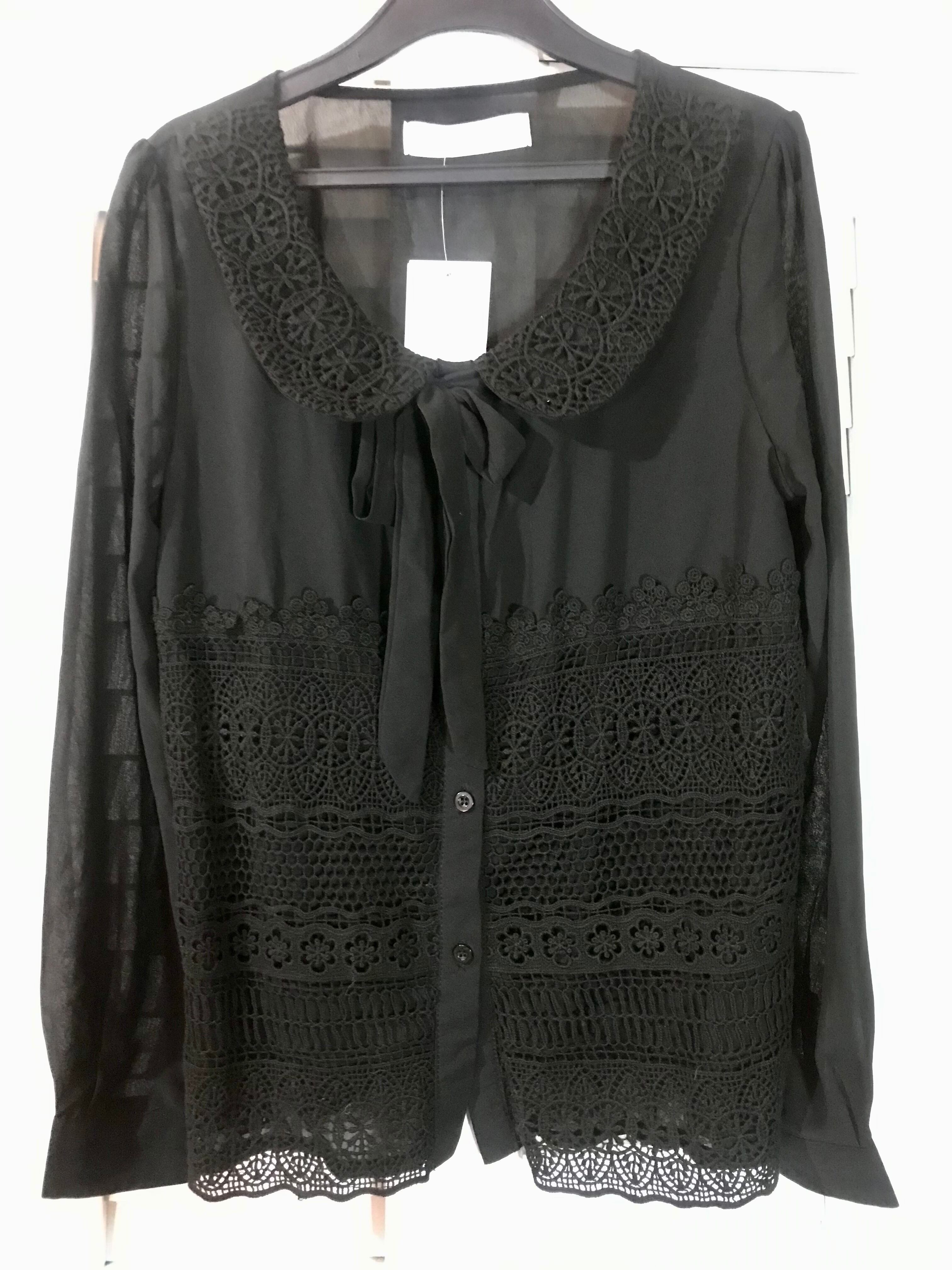 culots コットンレースのBIGカラージョーゼットブラウス ブラック