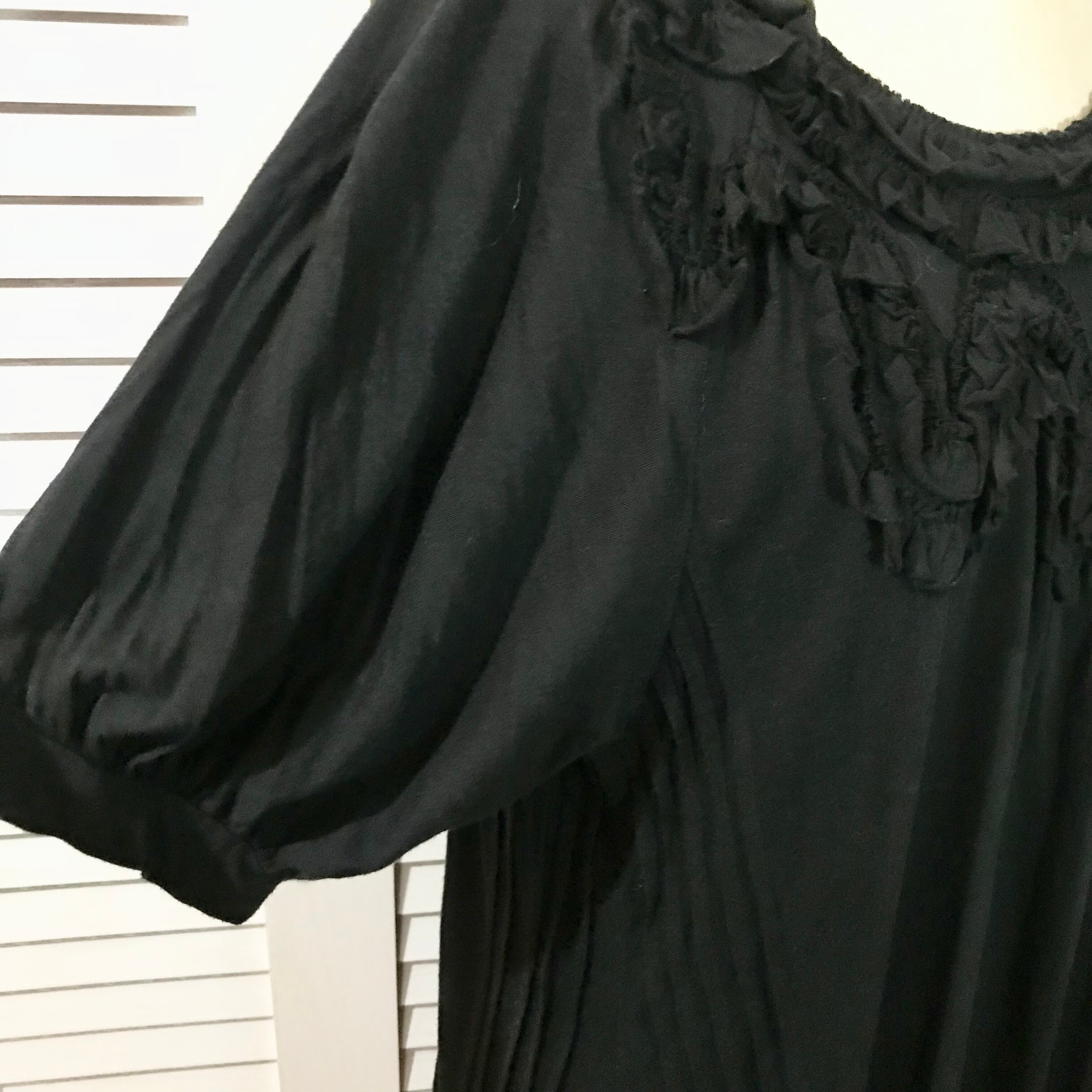 SUNAOKUWAHARA フリルモチーフ ピンタックデザイン カットソーワンピ ブラック