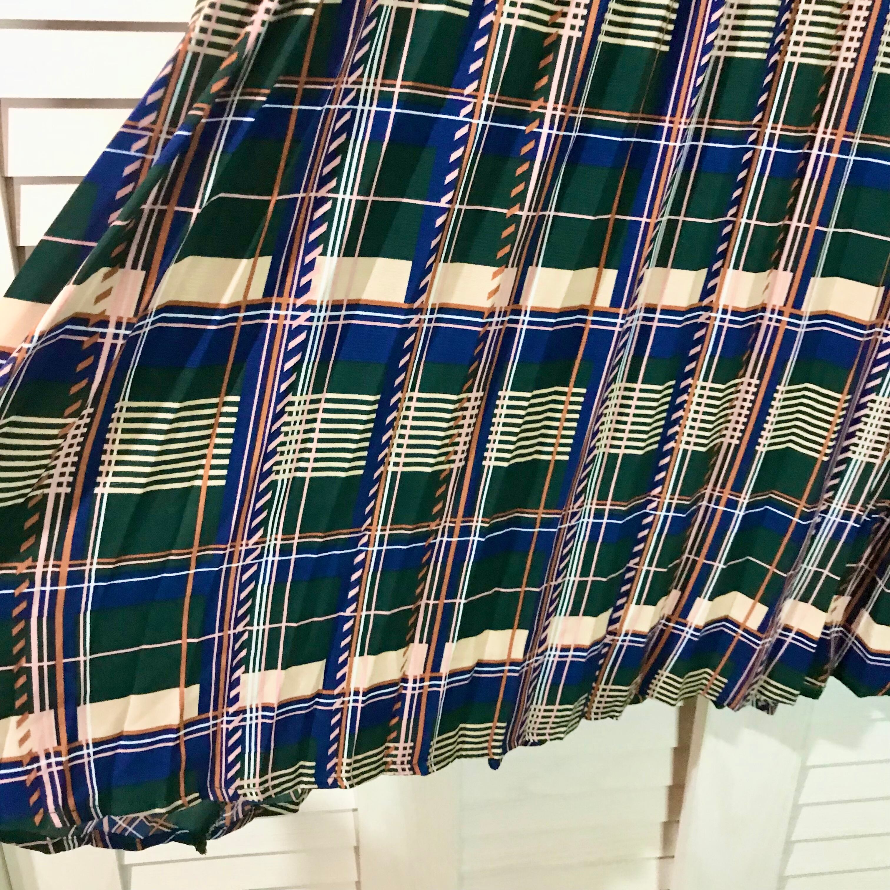 Aqua Marine 昭和レトロ レアカラー!タータンチェックプリーツスカート モスグリーン