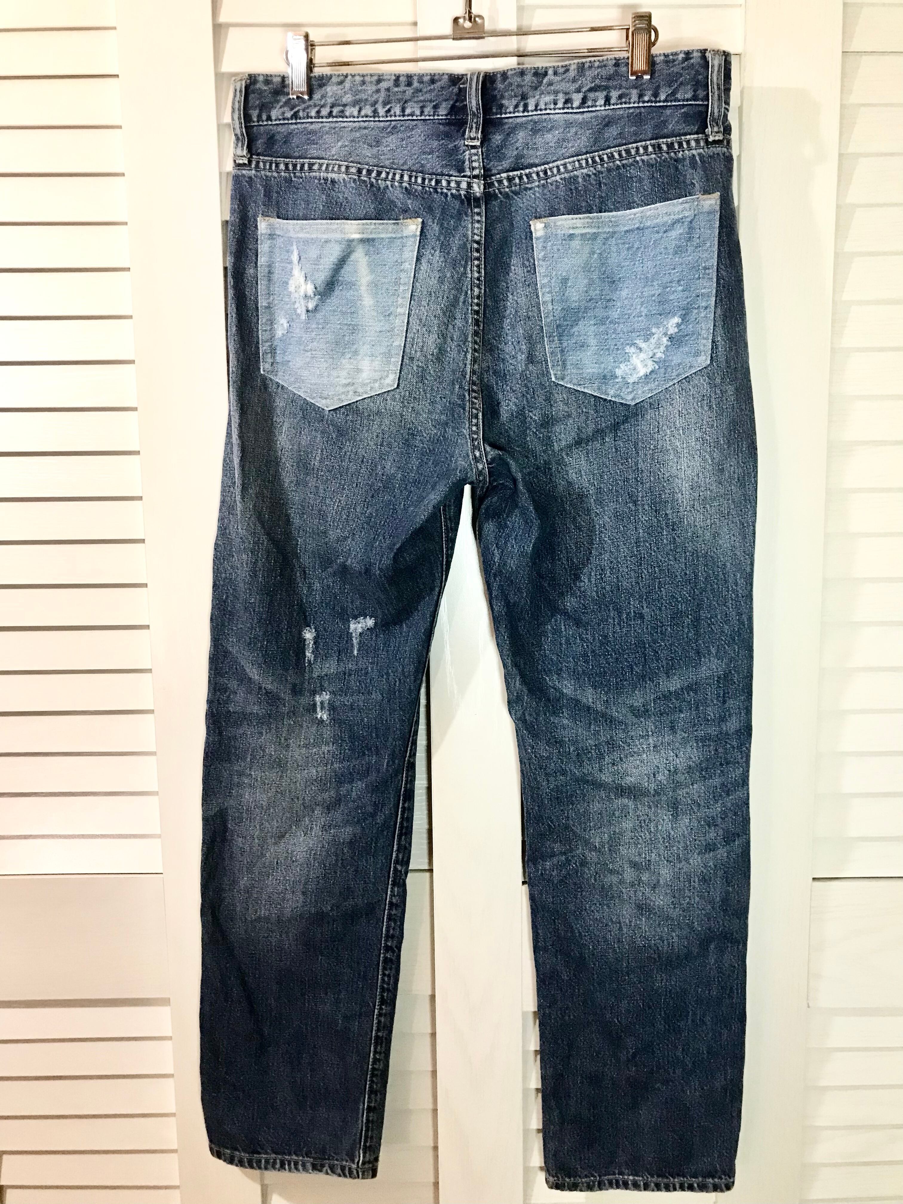 GLOBAL WORK リメイクデザイン ダメージ加工 インディゴストレートジーンズ