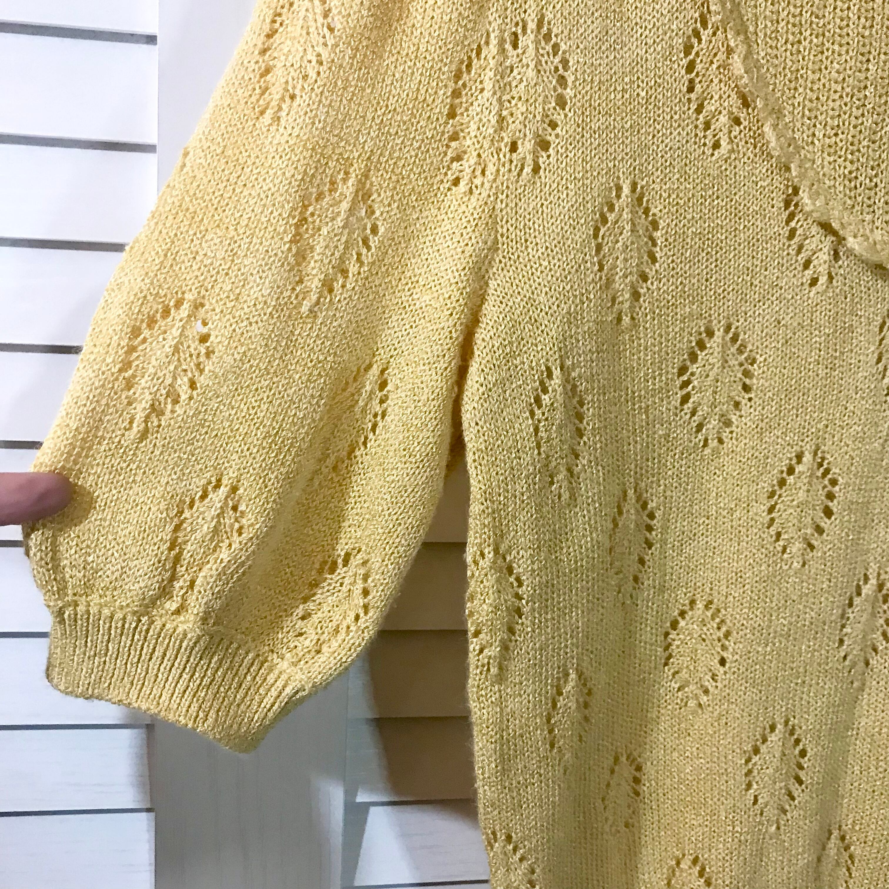 【国内古着】ヴィンテージ レーヨンリネン 透かし編み半袖ニット クリームイエロー | お洋服屋さん 『GOKKO』
