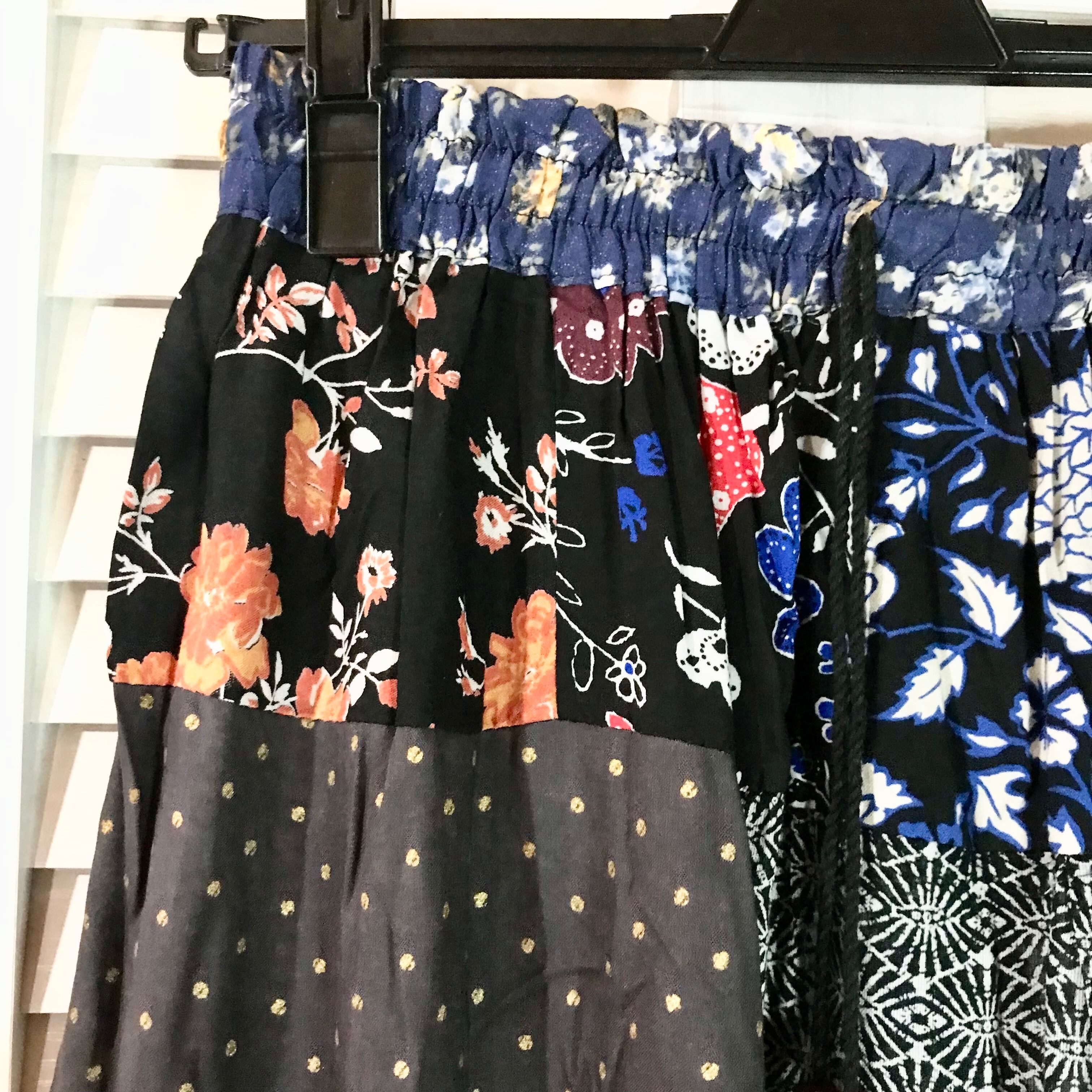 JAGANNATH オリエンタルパッチワーク レーヨンロングスカート ネイビー