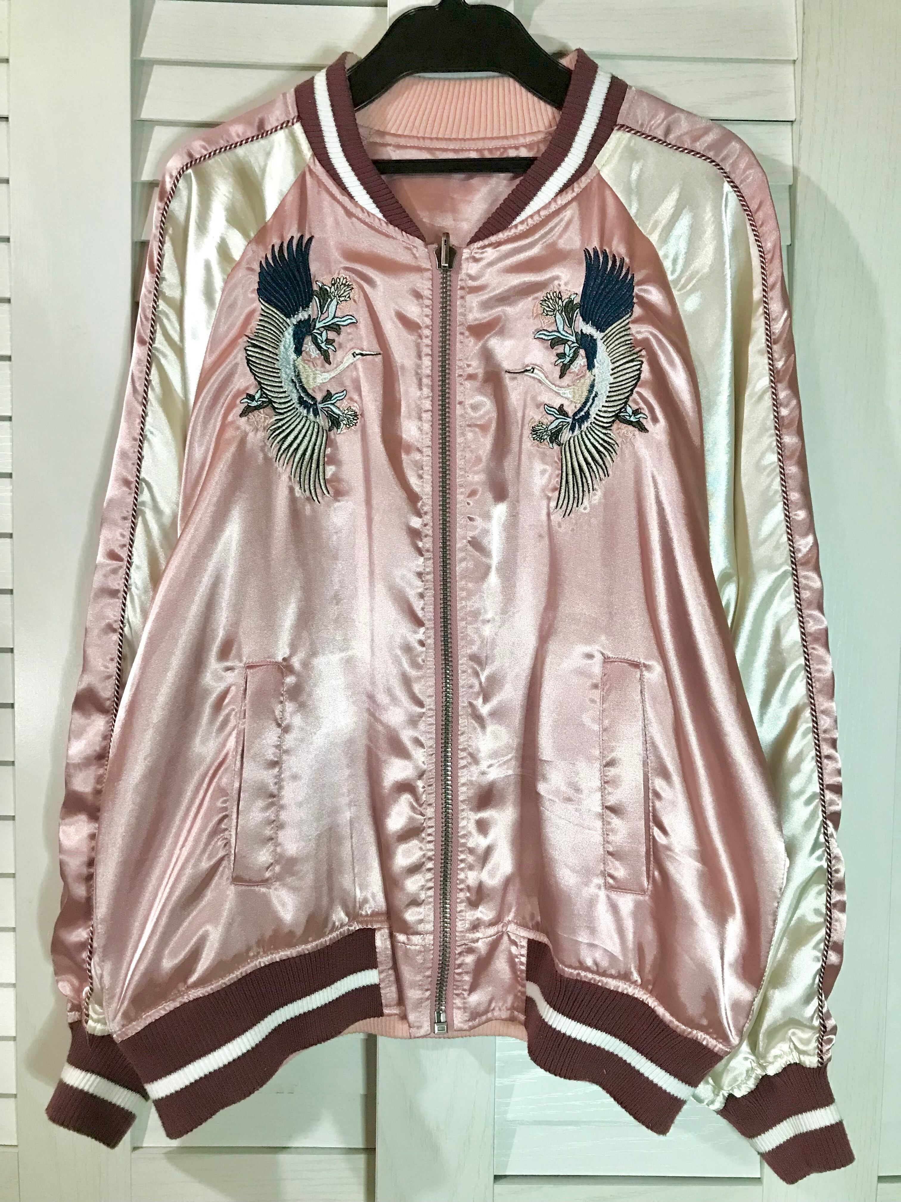 ENVYM ヴィンテージ風 鶴刺繍 リバーシブルスカジャン スモーキーピンク | お洋服屋さん 『GOKKO』