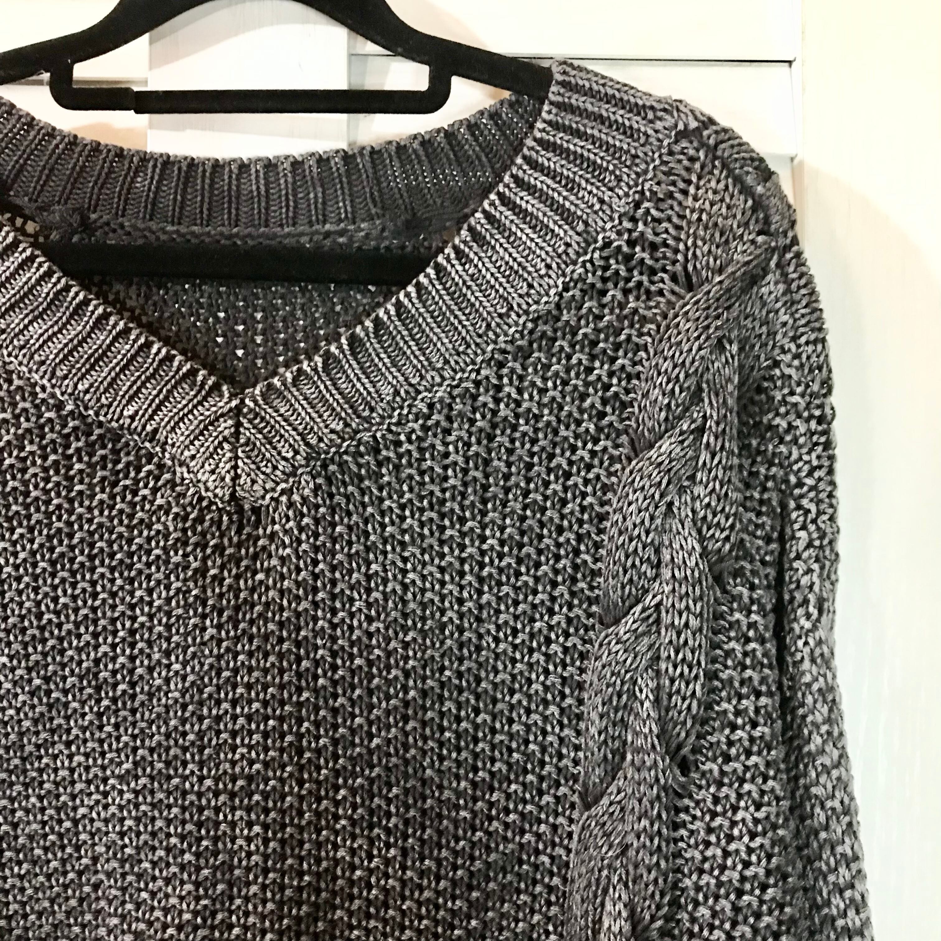 GYDA ケミカルウォッシュ加工 ケーブルコットンニットセーター チャコールグレー | お洋服屋さん 『GOKKO』