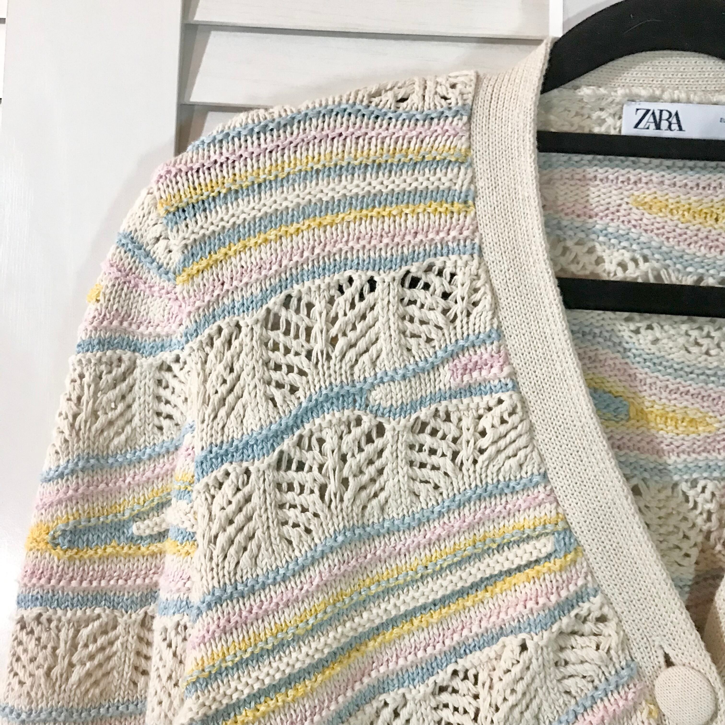 はなちゃん専用◎ZARA 変形透かし編み ヴィンテージ風コットンカーデ アイボリー×パステル | お洋服屋さん 『GOKKO』
