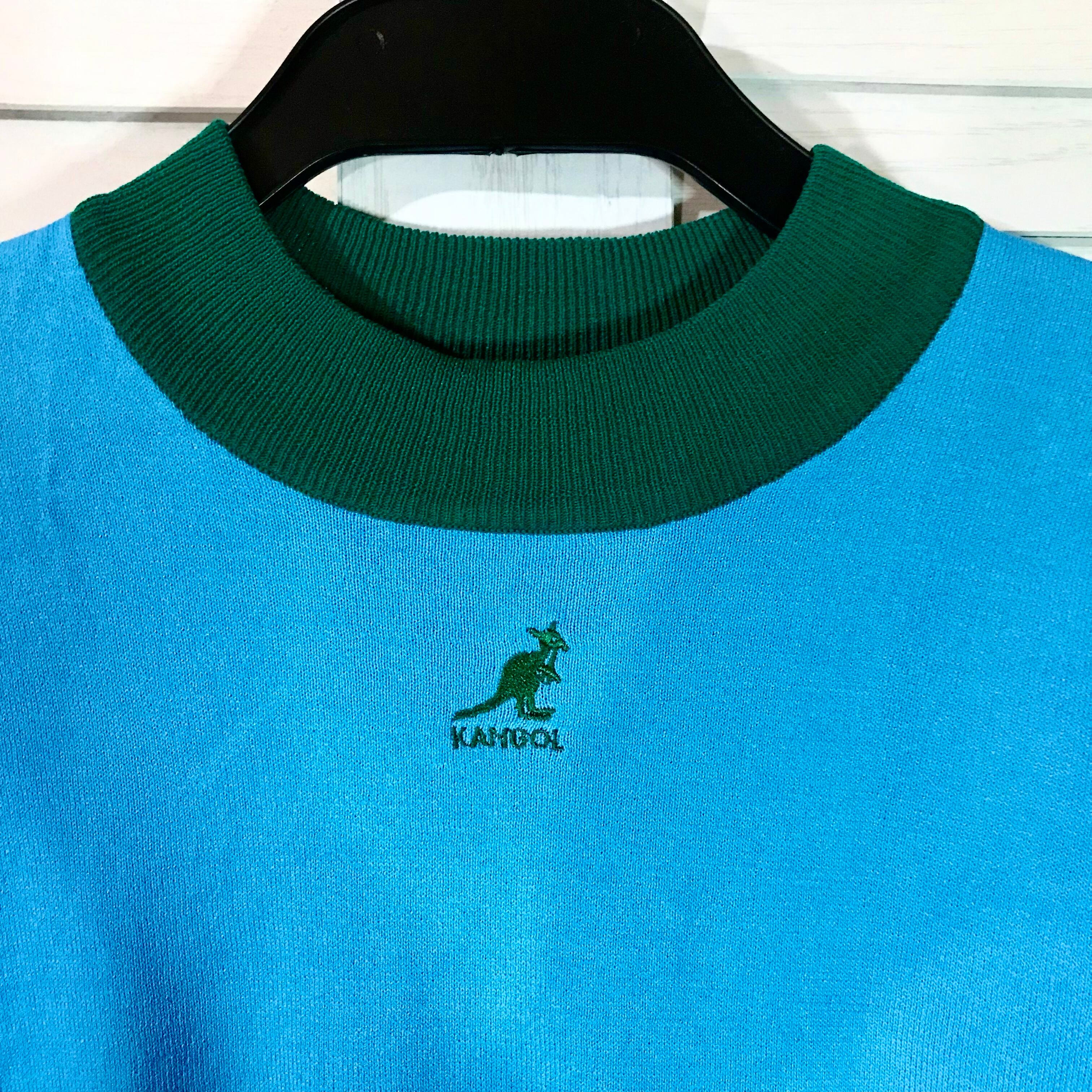 juetie 【KANGOLコラボ】ヴィヴィッドカラー レーヨンナイロン半袖ミニニット ブルー×グリーン