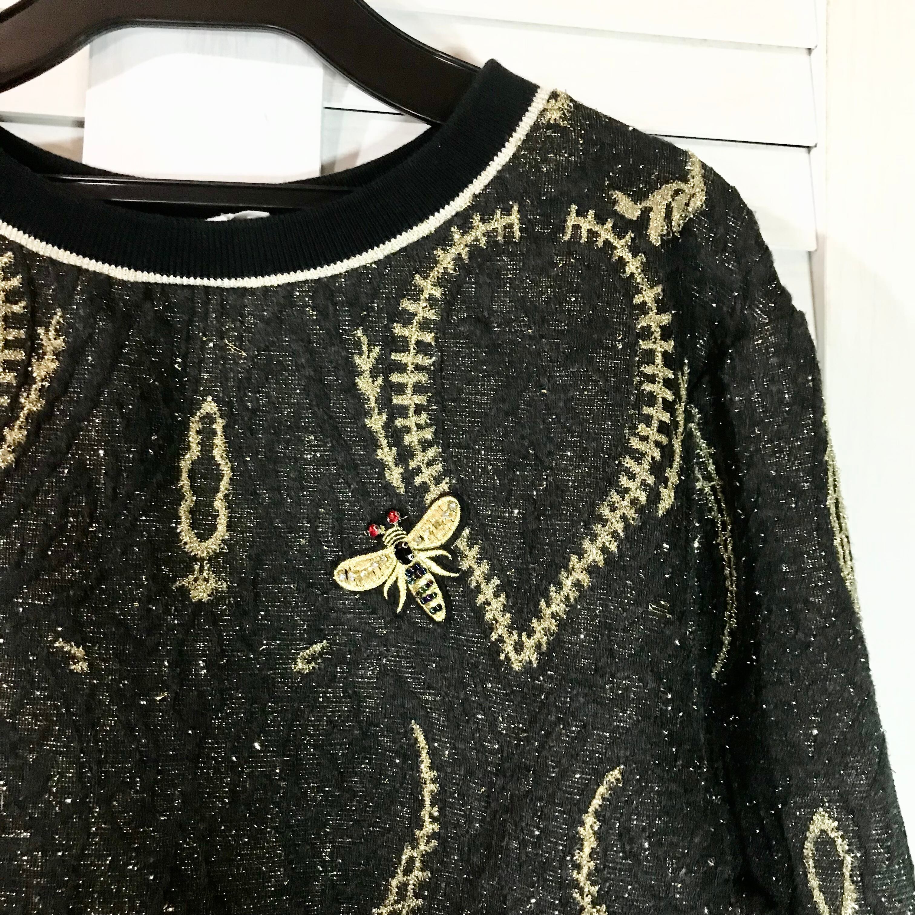 H&M みつばちビジュー&刺繍モチーフ ゴールドジャガードカットソー ブラック | お洋服屋さん 『GOKKO』