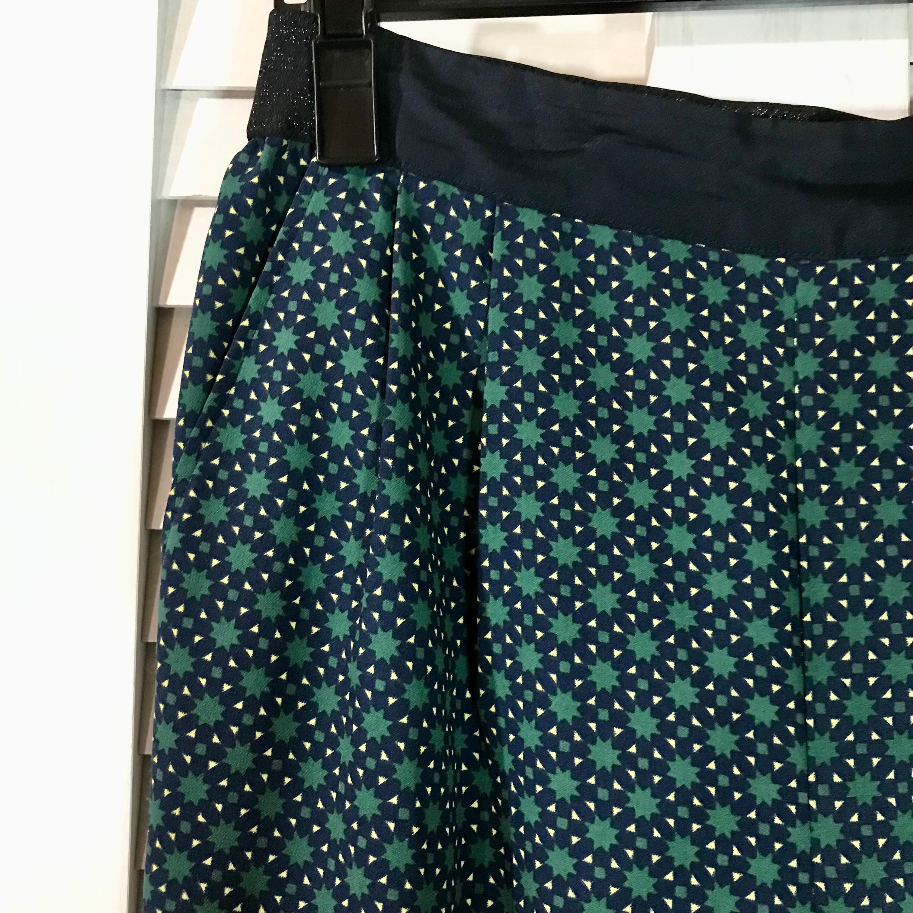 AMERICAN RAG CIE トゲトゲスター柄 ツータック テーパードパンツ ネイビー×グリーン