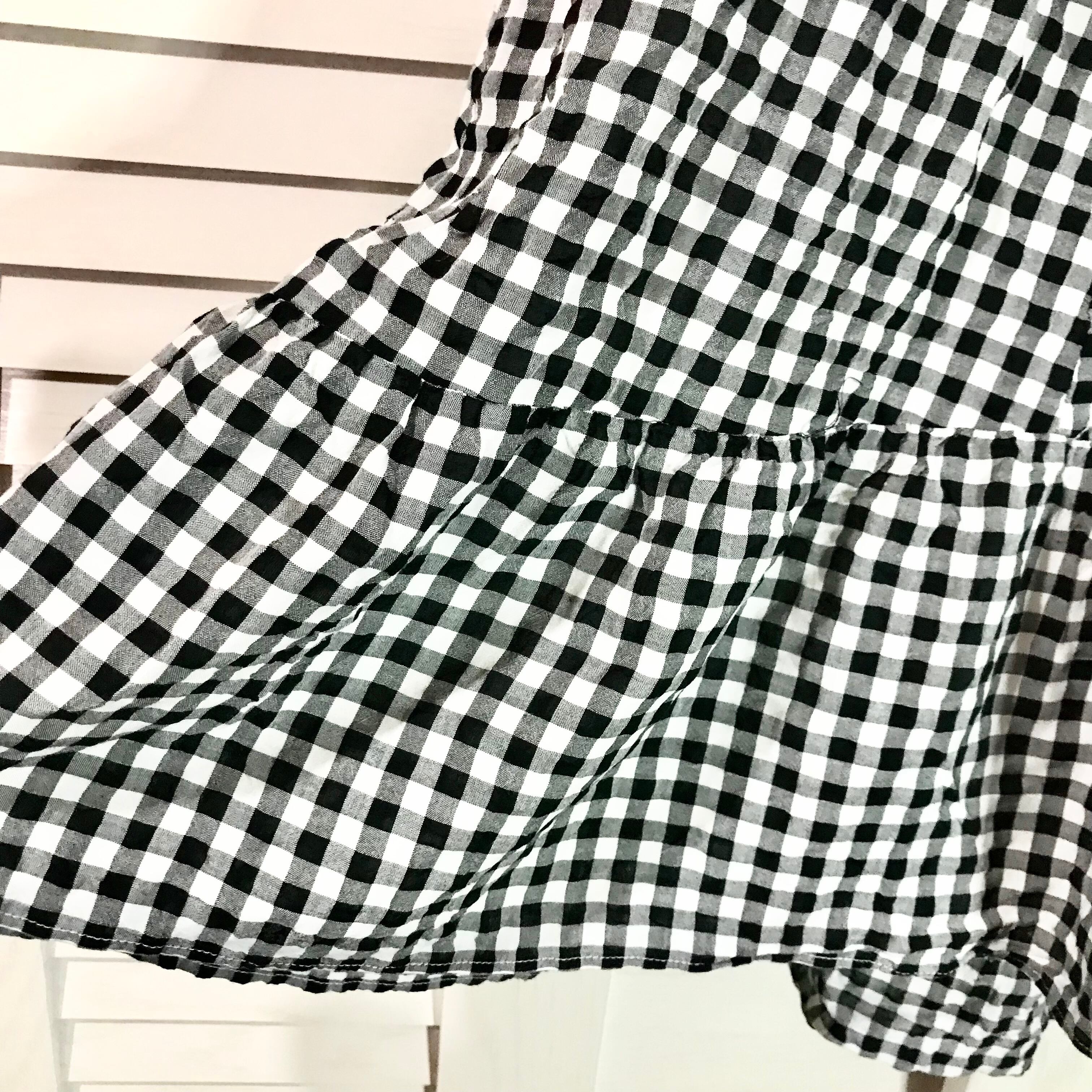 nico and… コットンレーヨンサッカー地 ギンガムチェック 変形デザインフィッシュテール ティアードスカート ブラック