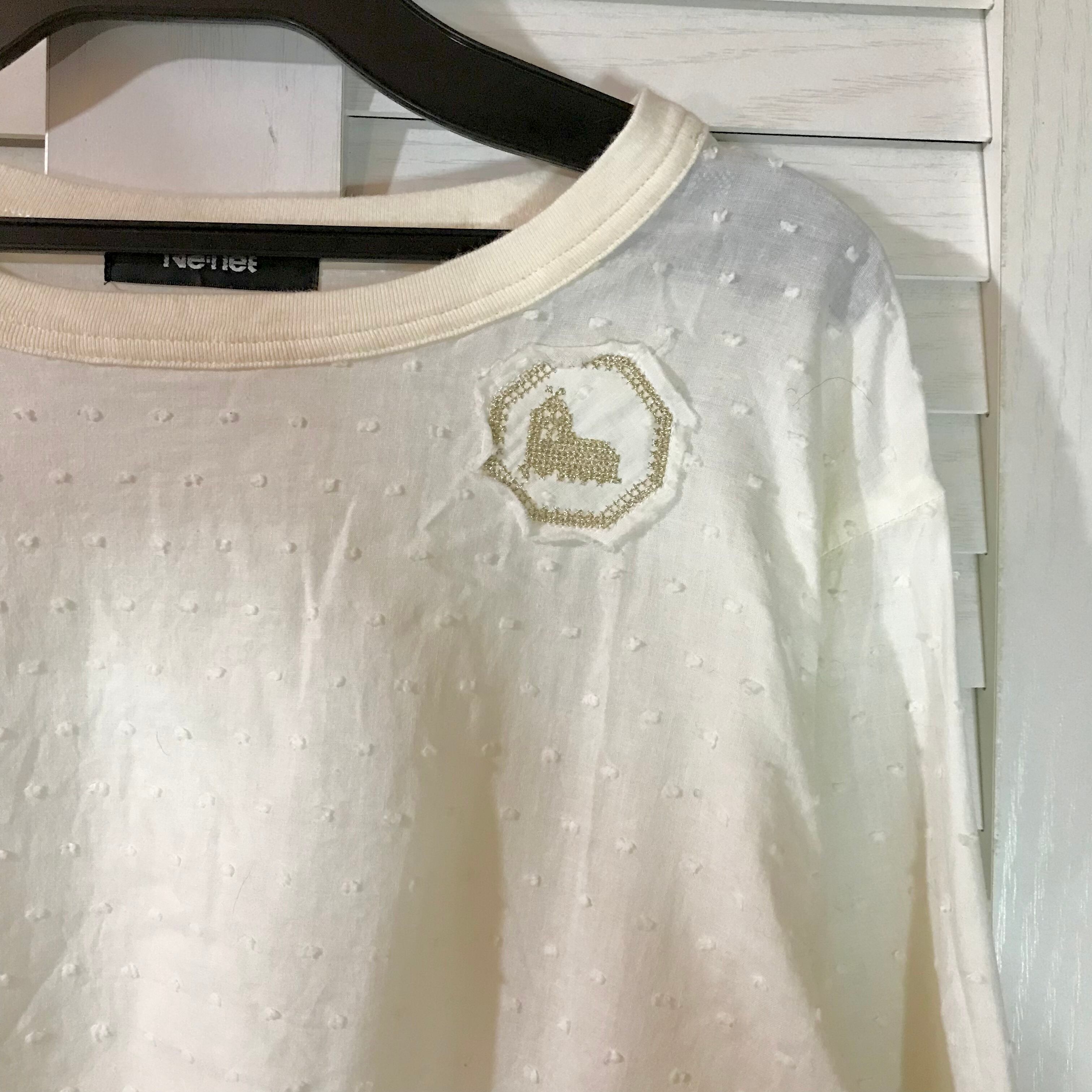 Ne-net ドット綿ローン ゴールドクロスステッチパッチ ウエストシャーリングプルオーバーシャツ アイボリー