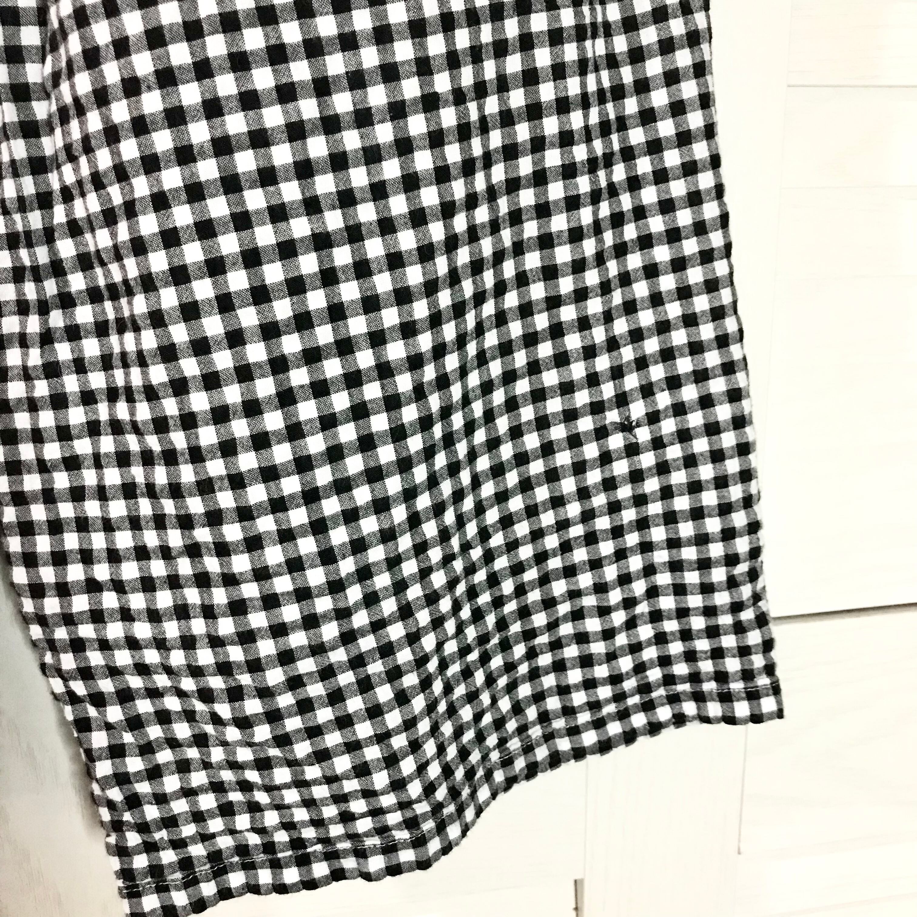Samansa mos2 コットンサッカー地 ギンガムチェック スリータックワイドパンツ ブラック