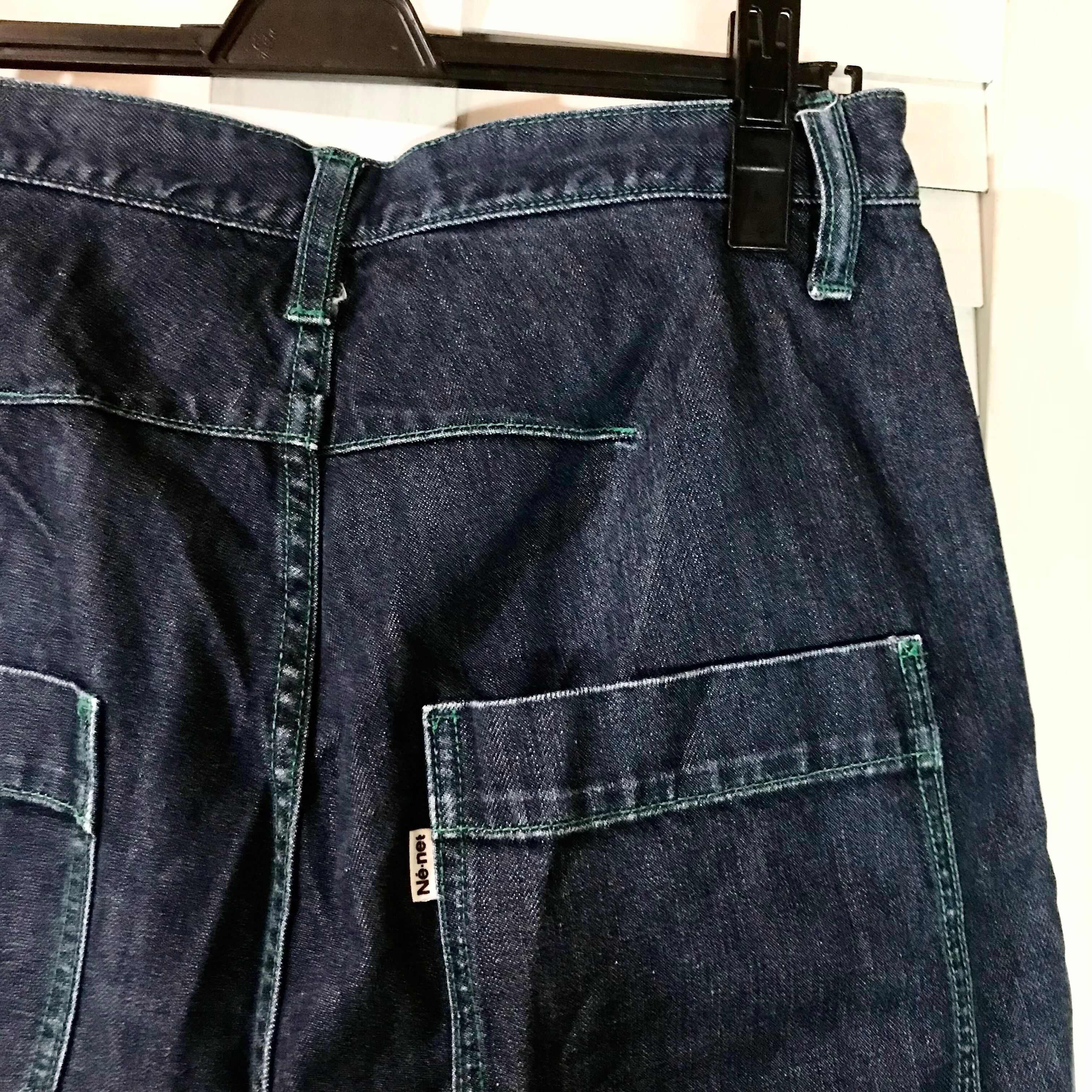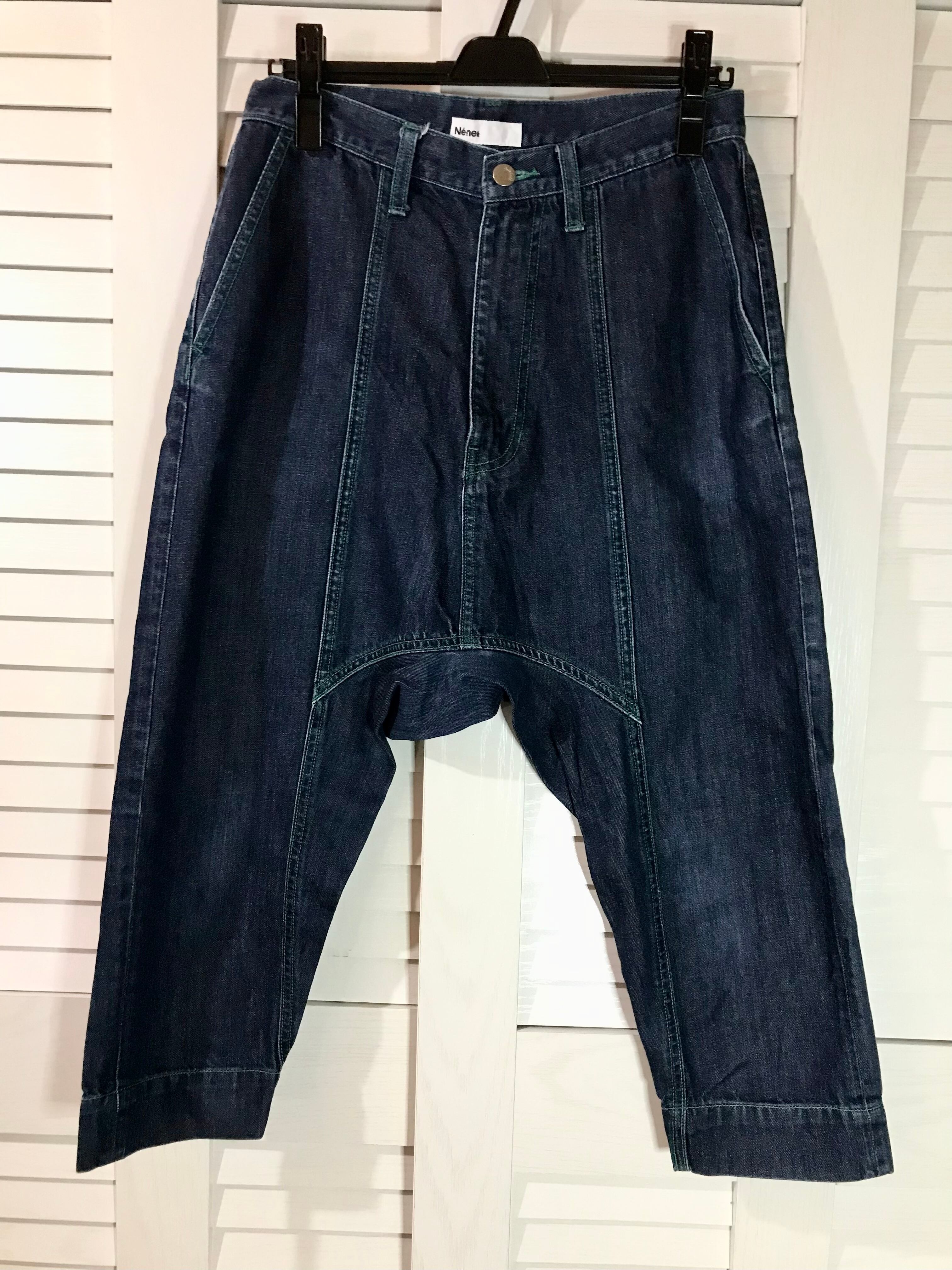 なっちゃん専用◎サスペンダー付きNe-net グリーンステッチ インディゴデニム サルエルジーンズ