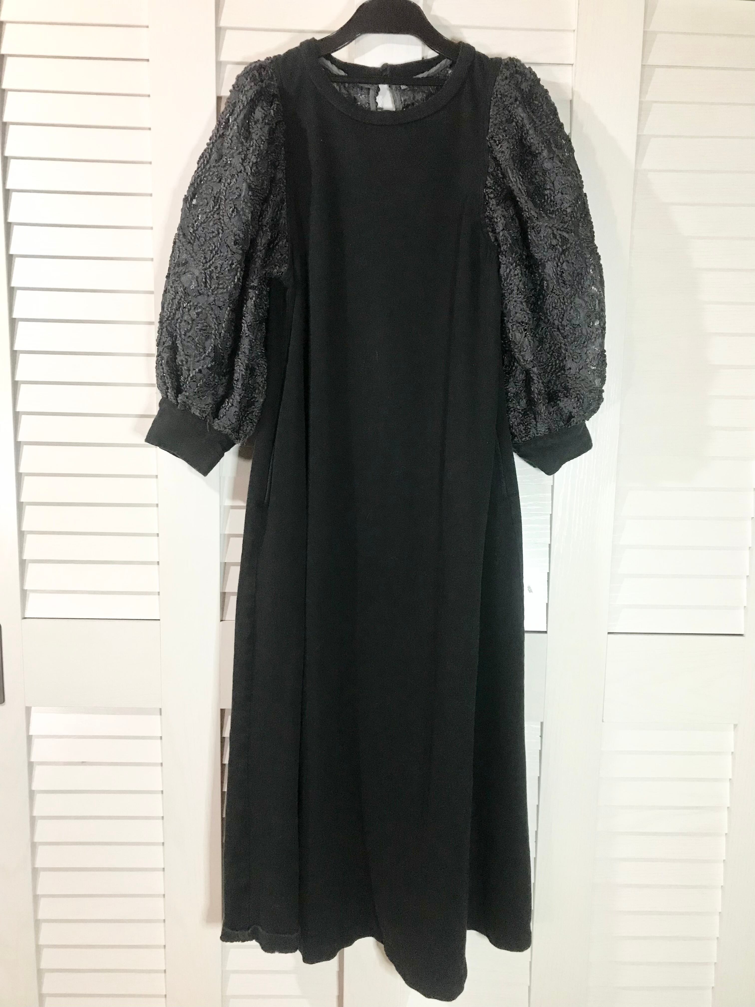 はなざぶろう専用◎JEANASIS 細見え!ブレードデザインレースのボリュームスリーブ スウェットワンピ ブラック