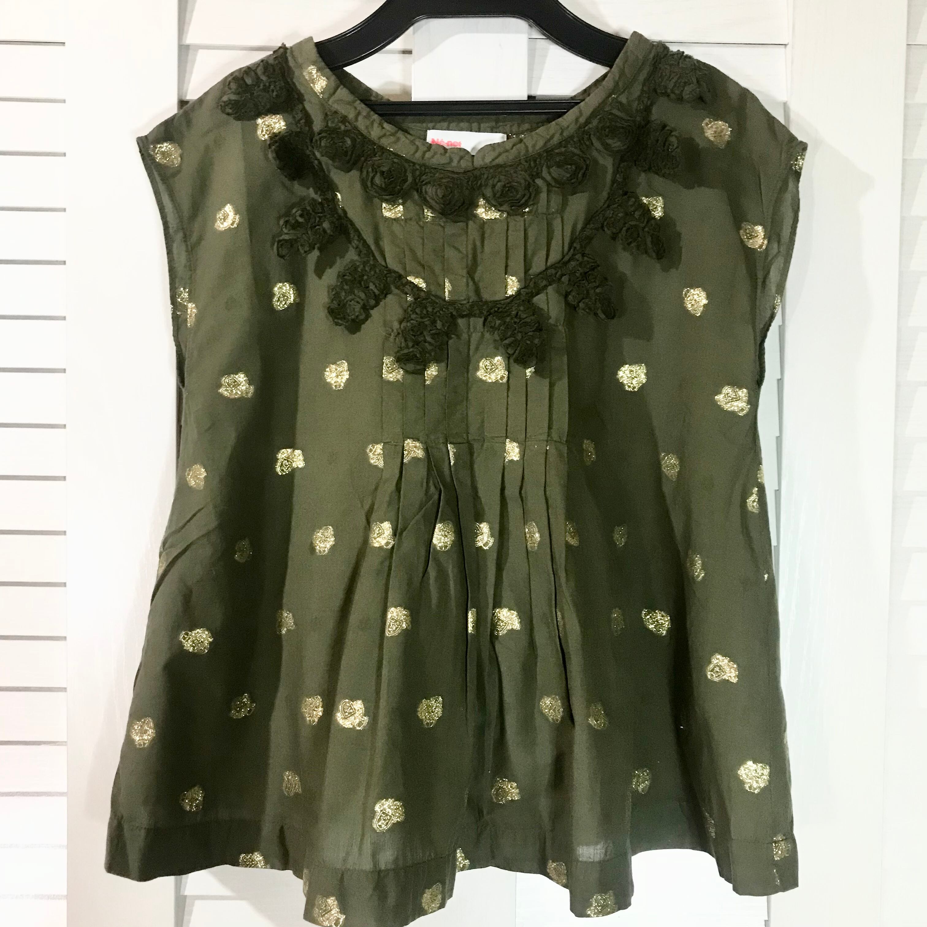 Ne-net ゴールドエンブレム柄 ぐるぐるレースブレード フレンチスリーブチュニックブラウス カーキ