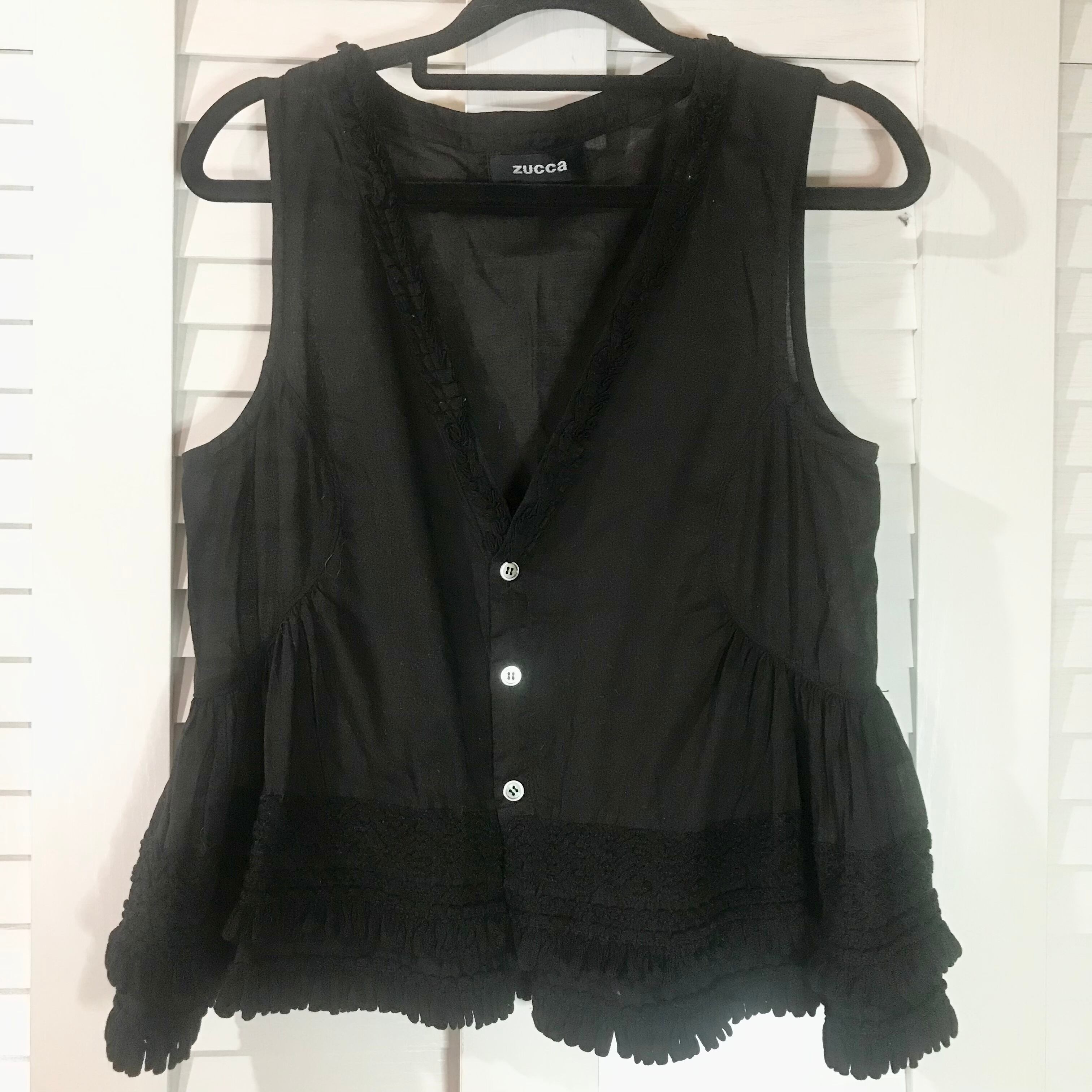 ZUCCa 綿ローン ブレードペプラムデザイン ノースリーブブラウス ブラック