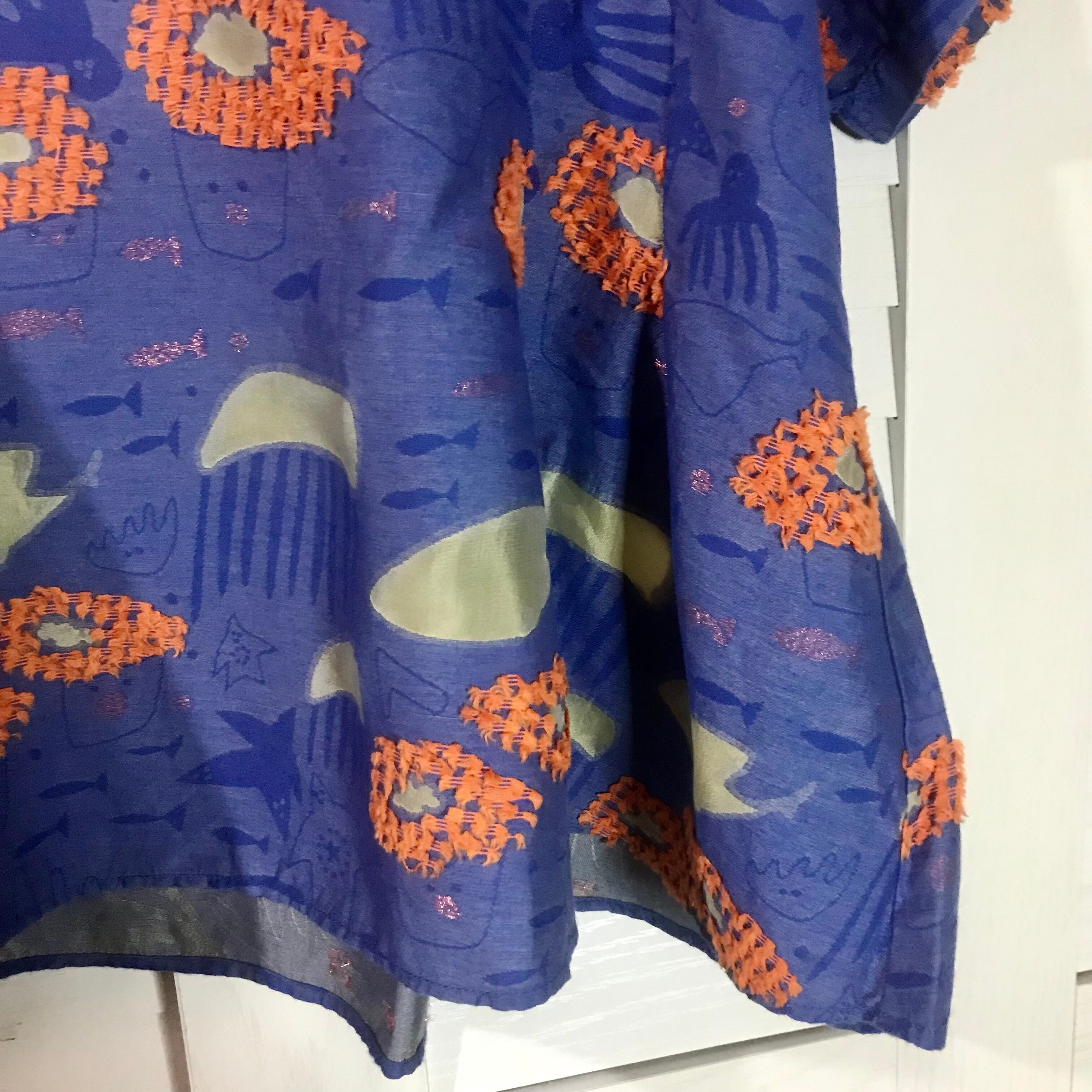 ぽんぽんさん専用◎Ne-net ウニ刺繍 海の生き物 プルオーバーシャツ インディゴ