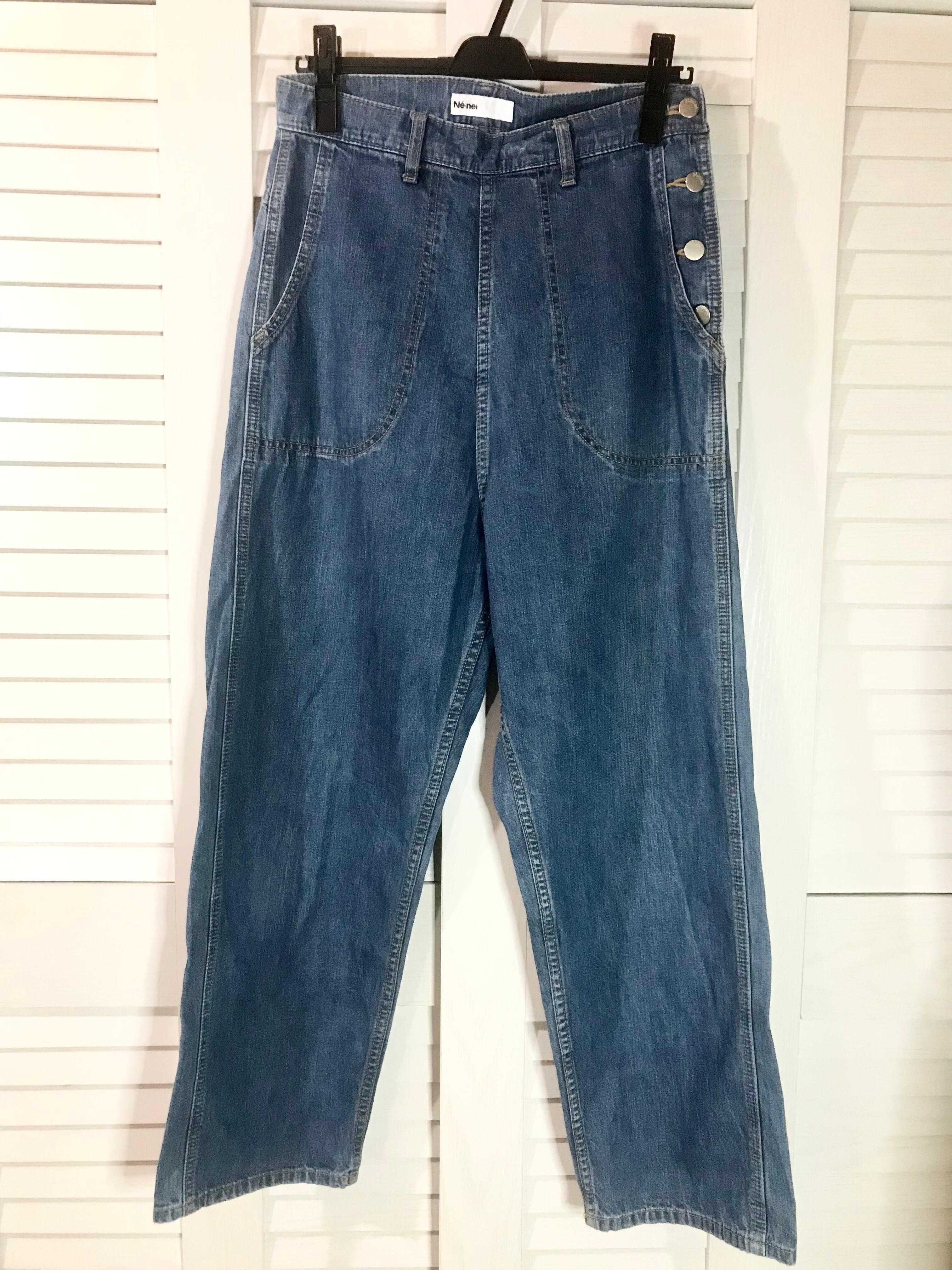 Ne-net お花ちゃん刺繍 ペインターサルエルジーンズ ブルー