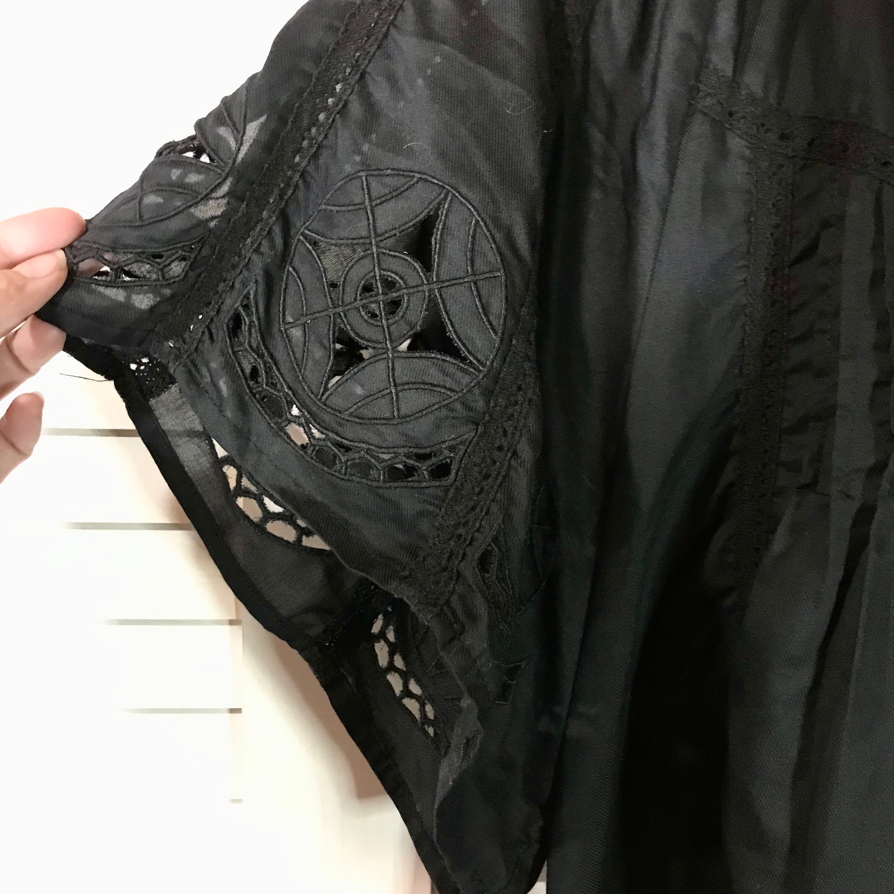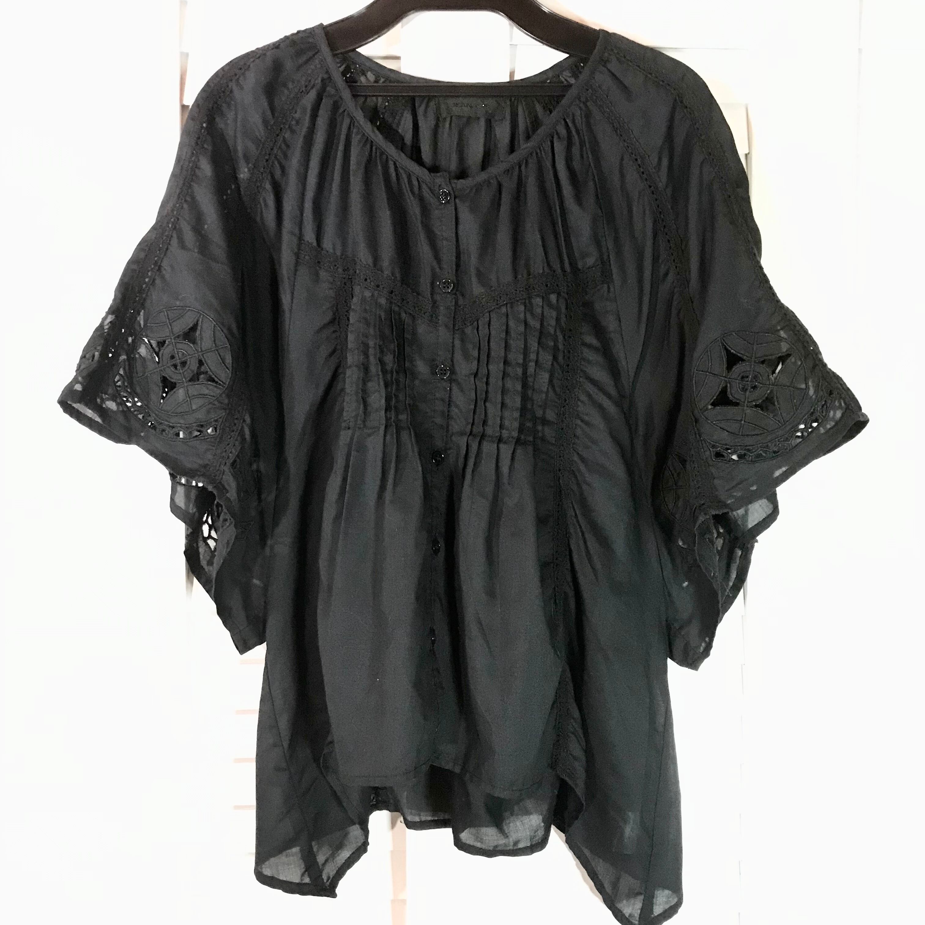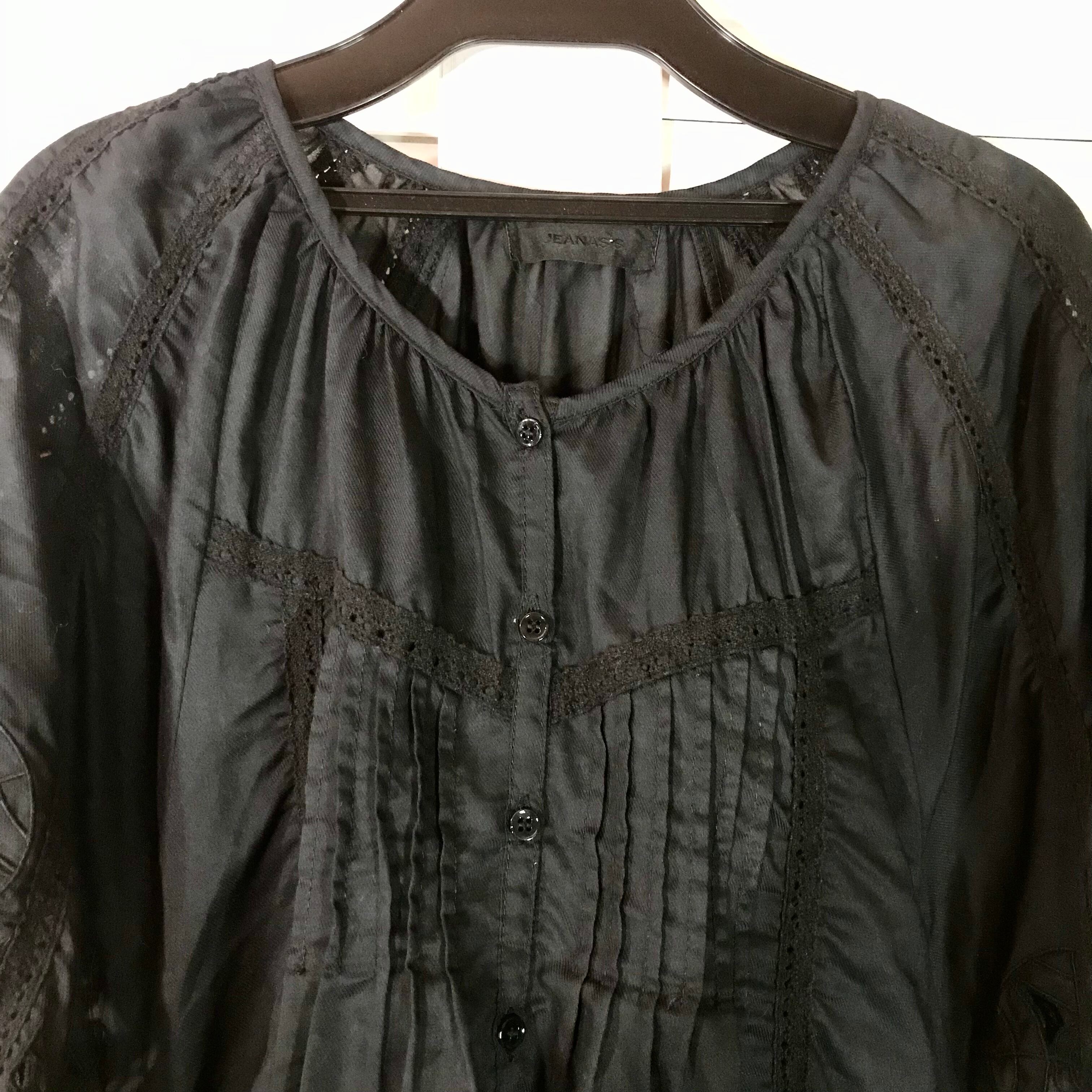 JEANASIS カッティングレースベルスリーブ ピンタックデザインブラウス ブラック