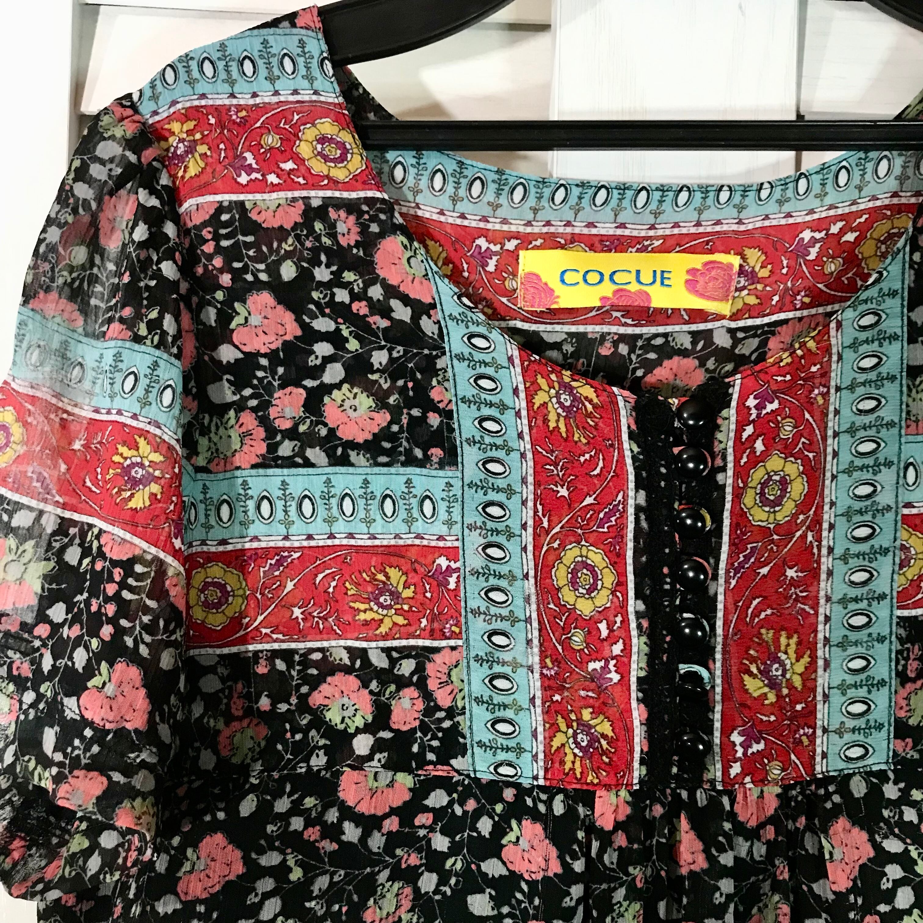 COCUE ポップカラー ヨーロピアンオリエンタル シフォンチュニックワンピ ブラック