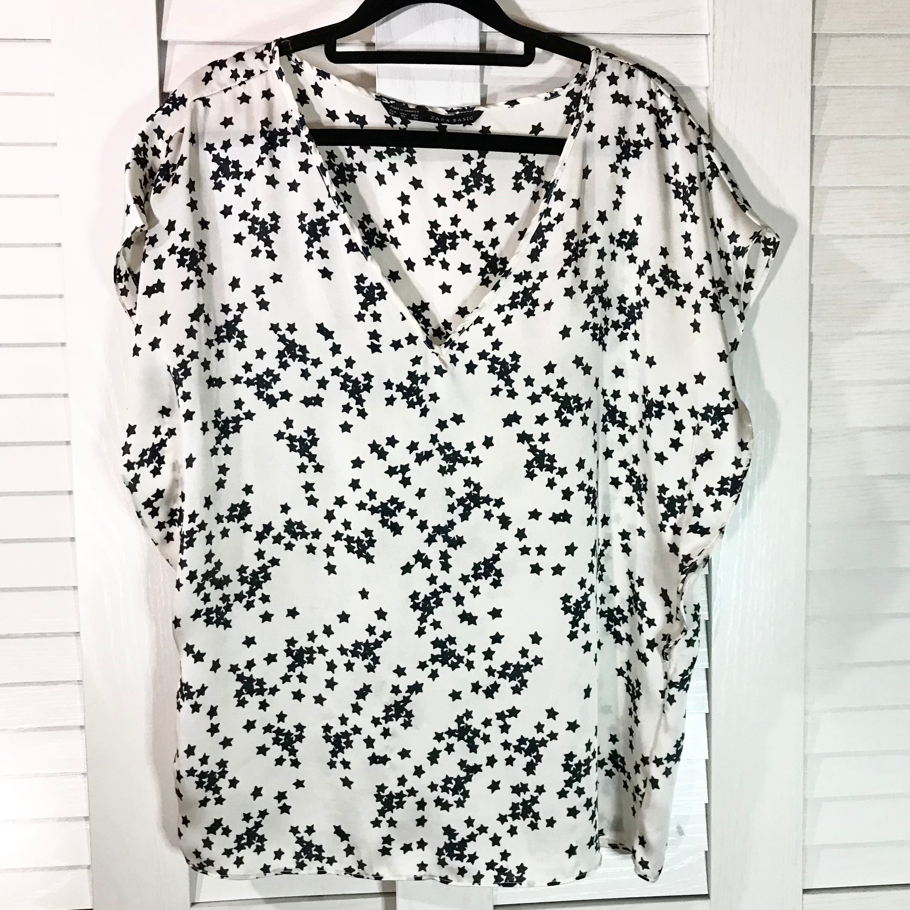 はなちゃん専用◎ZARA 大人っぽスタープリント サテン ルーズプルオーバーシャツ オフホワイト
