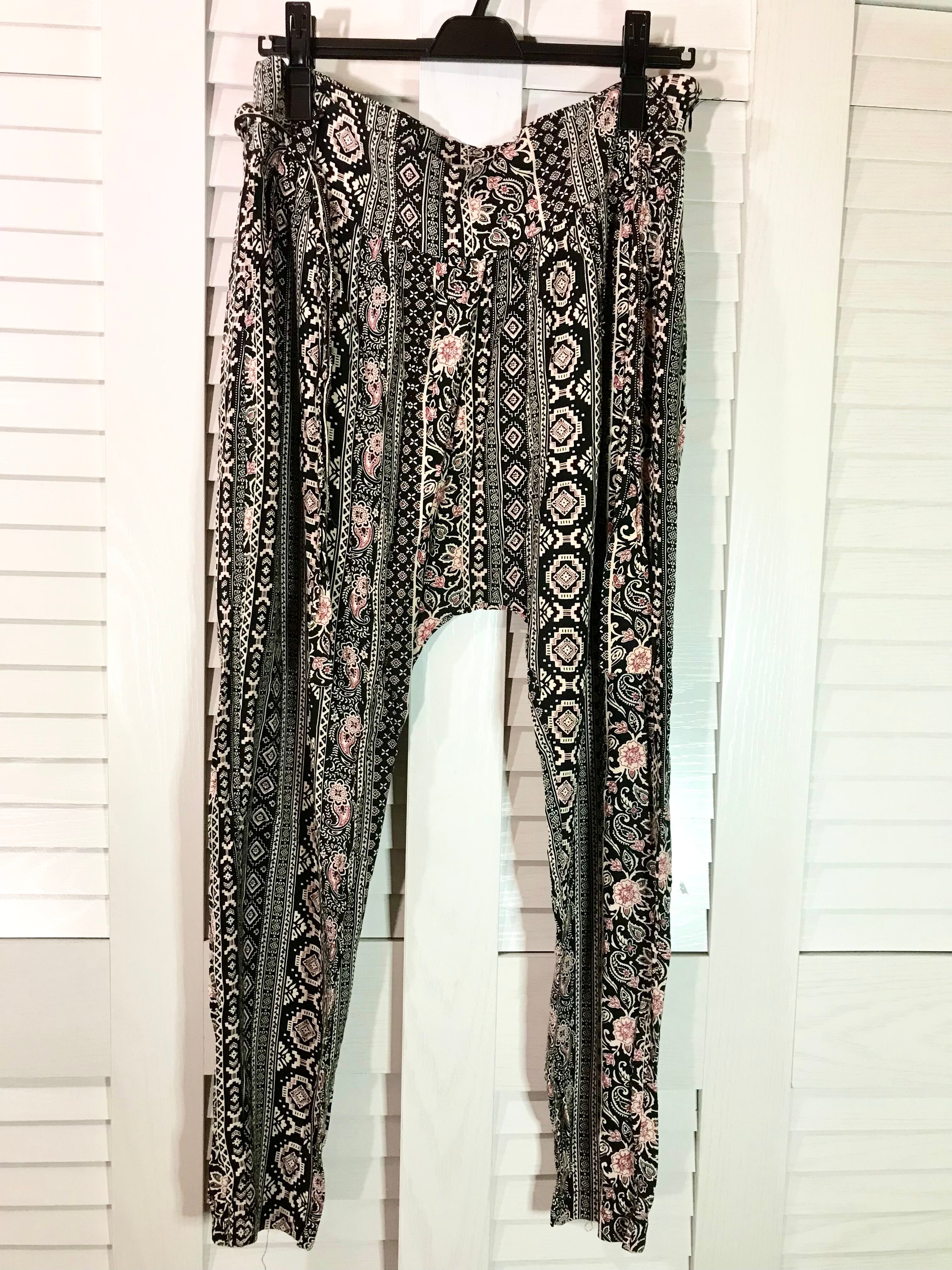 FOREVER 21 オリエンタルプリント 大人っぽレーヨンサルエルパンツ ブラック