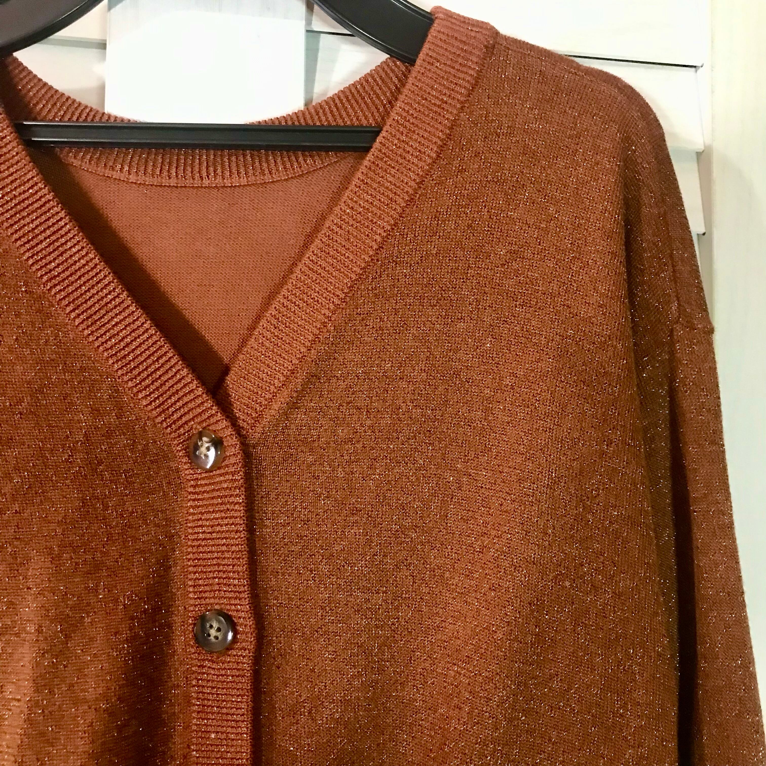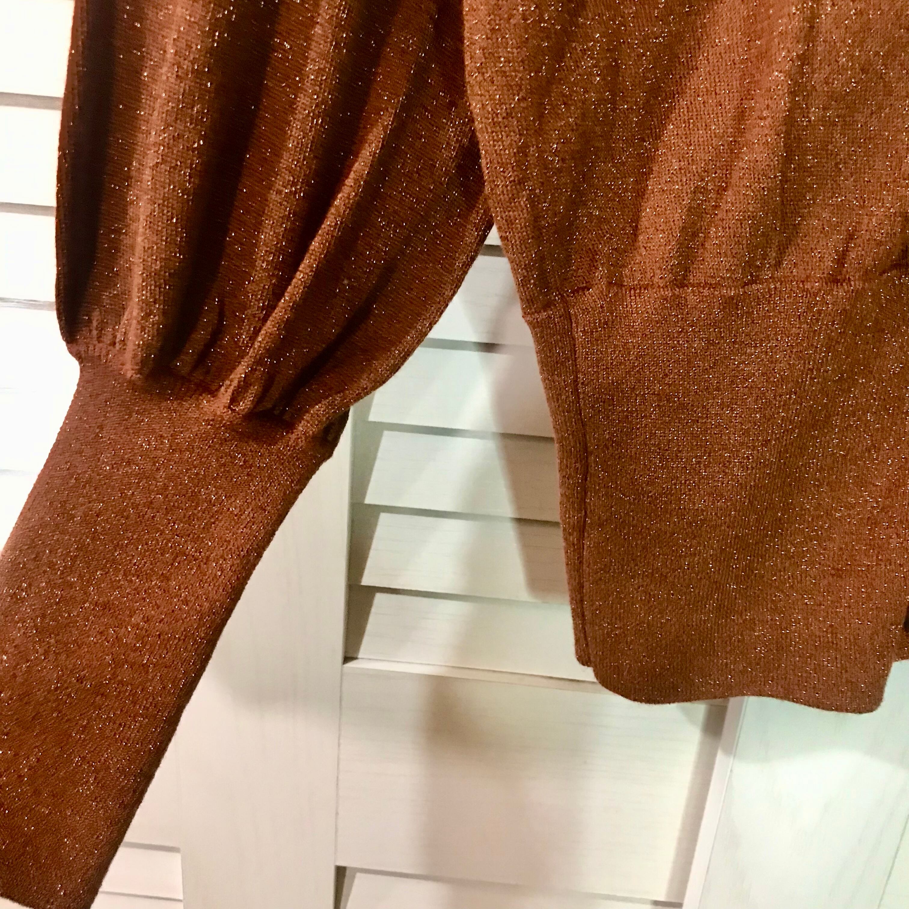 SLY ゴールドヤーン バルーンスリーブ レーヨンニットカーデ オレンジ | お洋服屋さん 『GOKKO』
