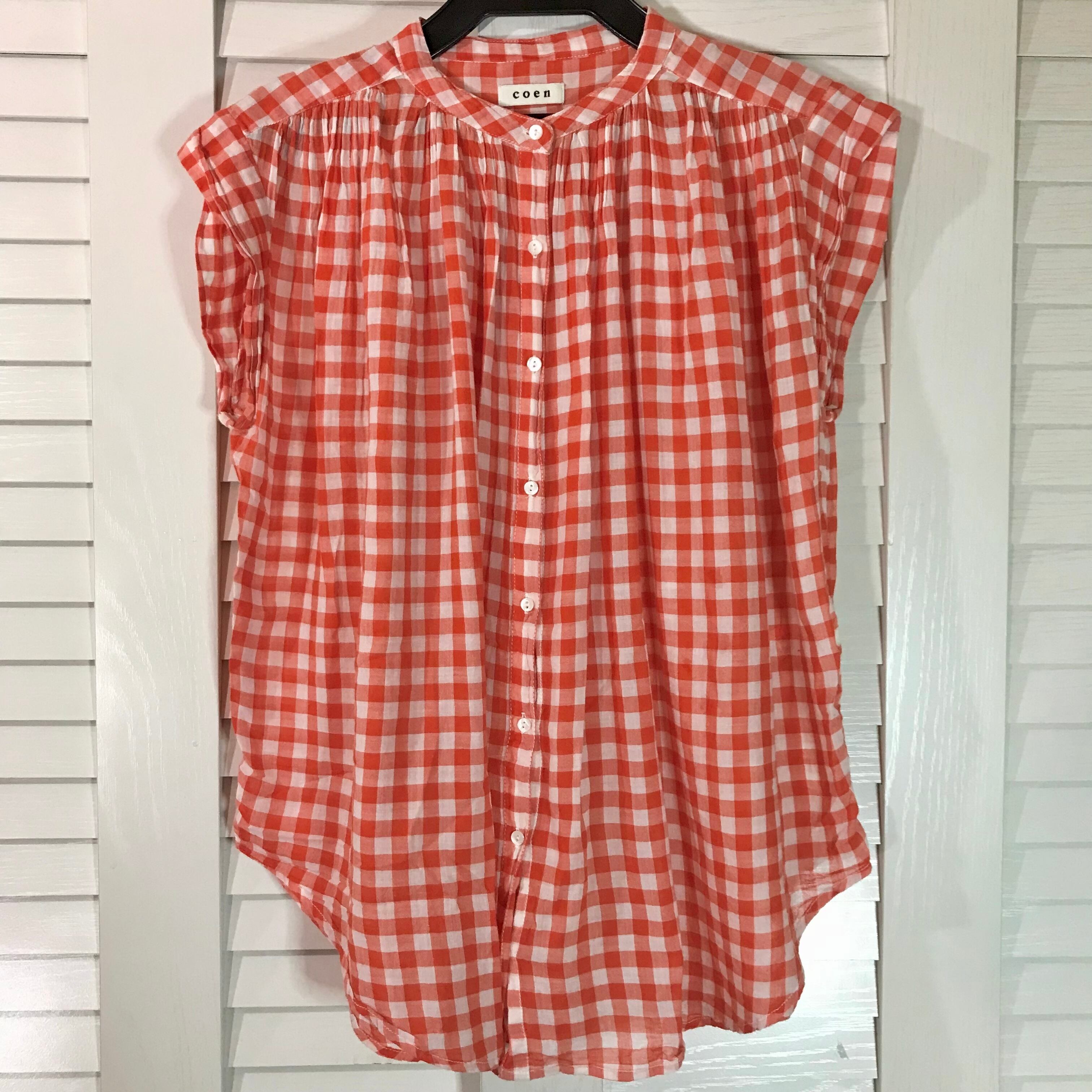 ゆっこさん専用◎coen インドコットン ギンガムチェック ボリュームブラウス オレンジ | お洋服屋さん 『GOKKO』