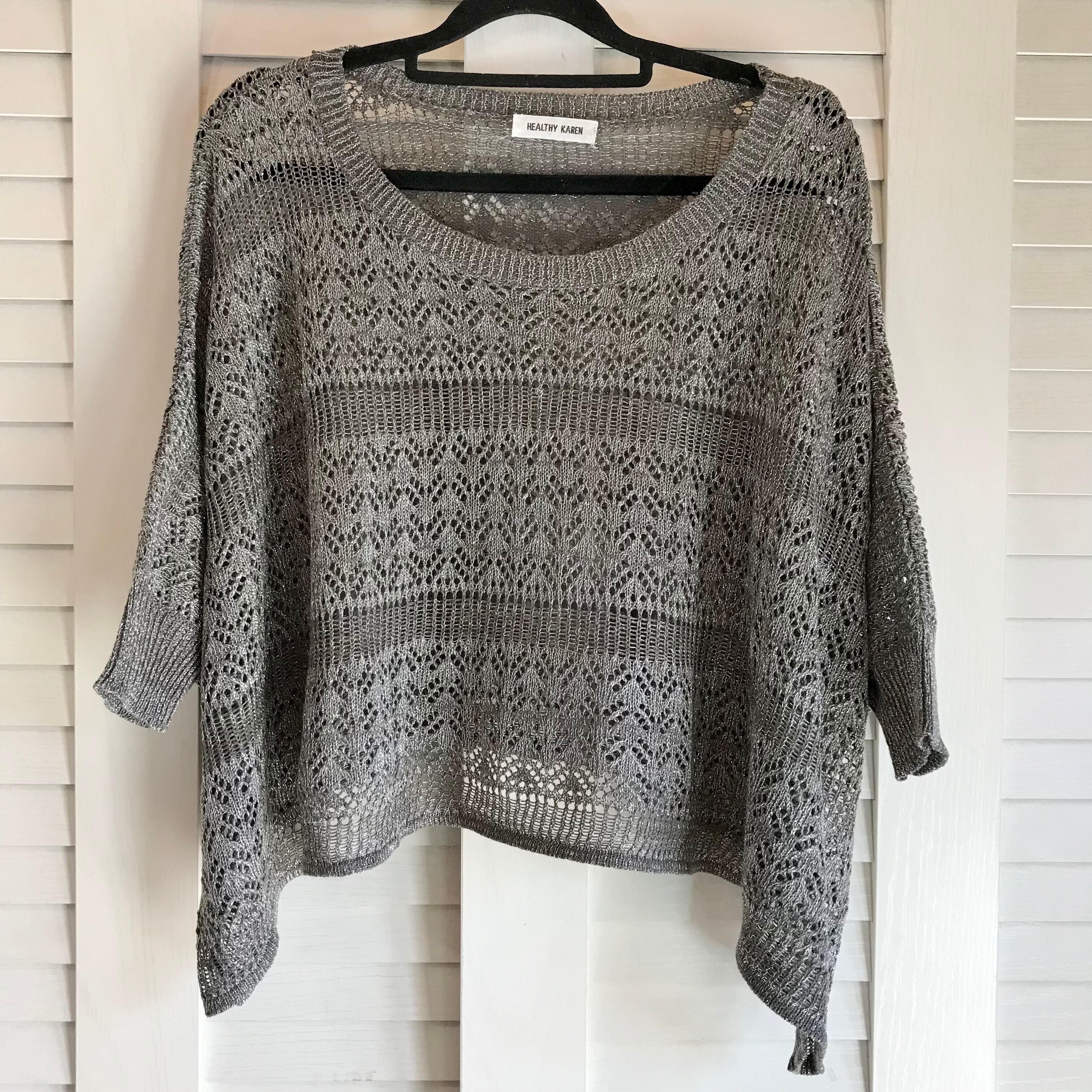 HEALTHY KAREN シルバーヤーン 針抜きショート丈ニット シルバーグレー | お洋服屋さん 『GOKKO』