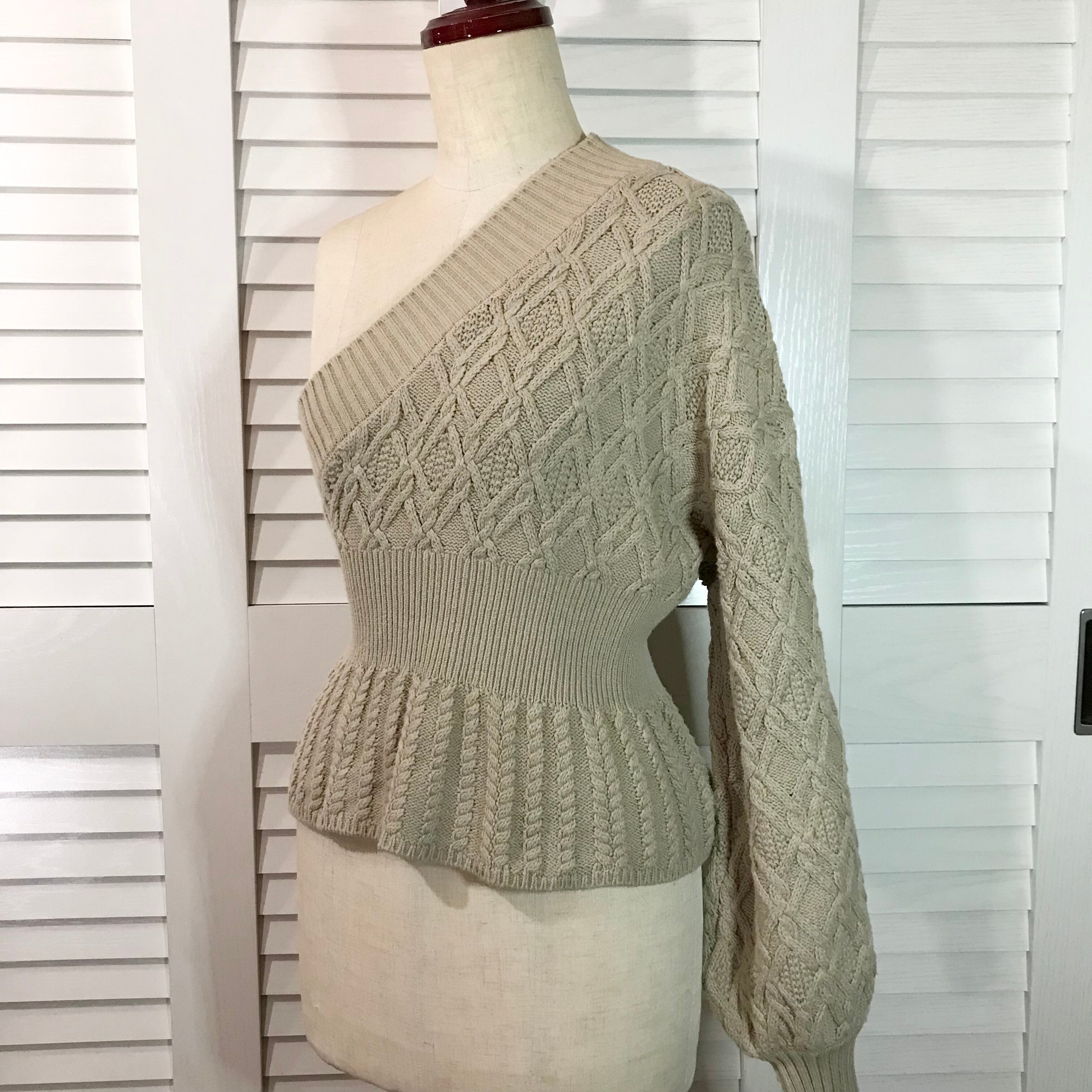 mysty woman ケーブルワンショルボリュームスリーブプルオーバー ベージュ