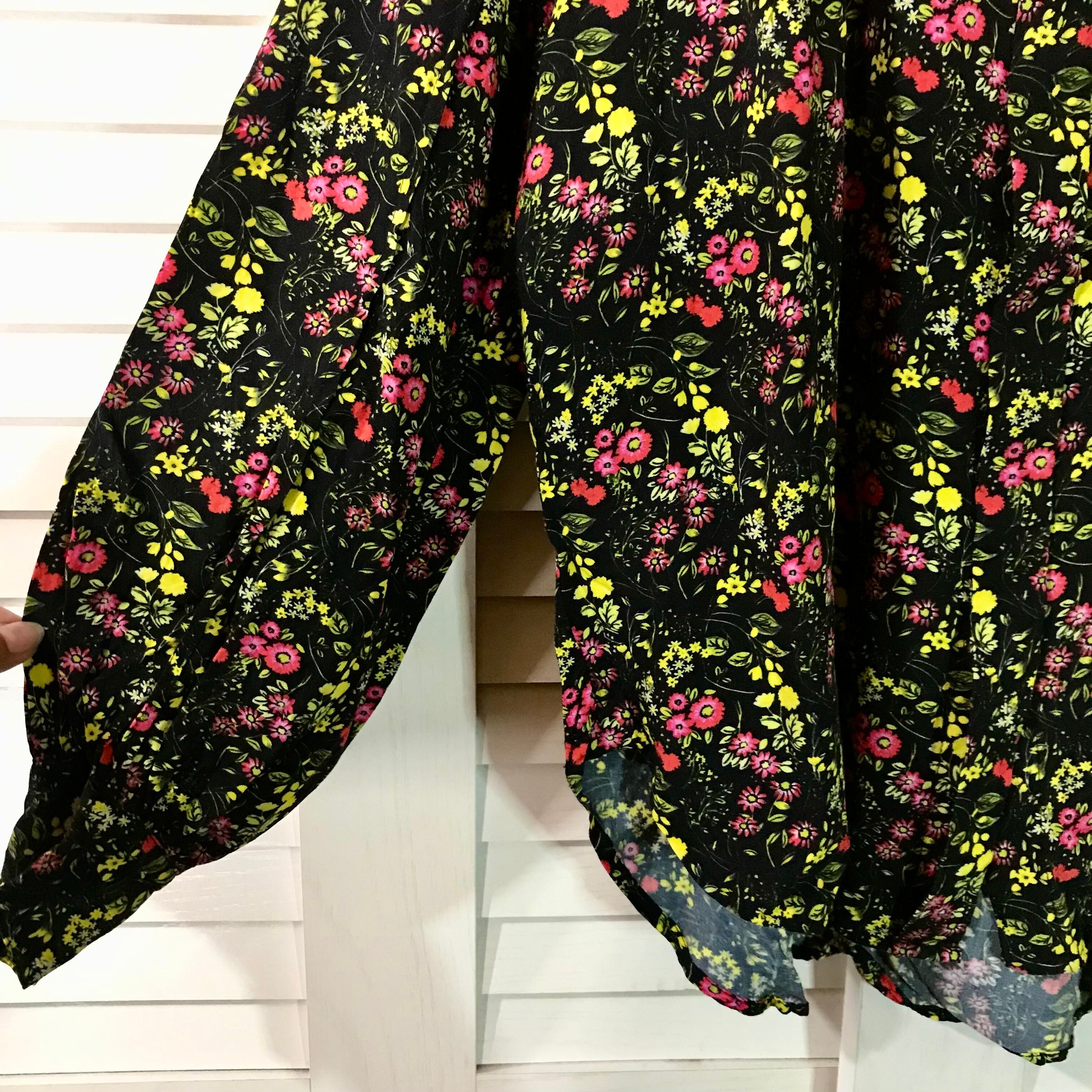 AMERICAN RAG CIE ヴィヴィッド小花柄レーヨンボリュームシャツブラウス ブラック