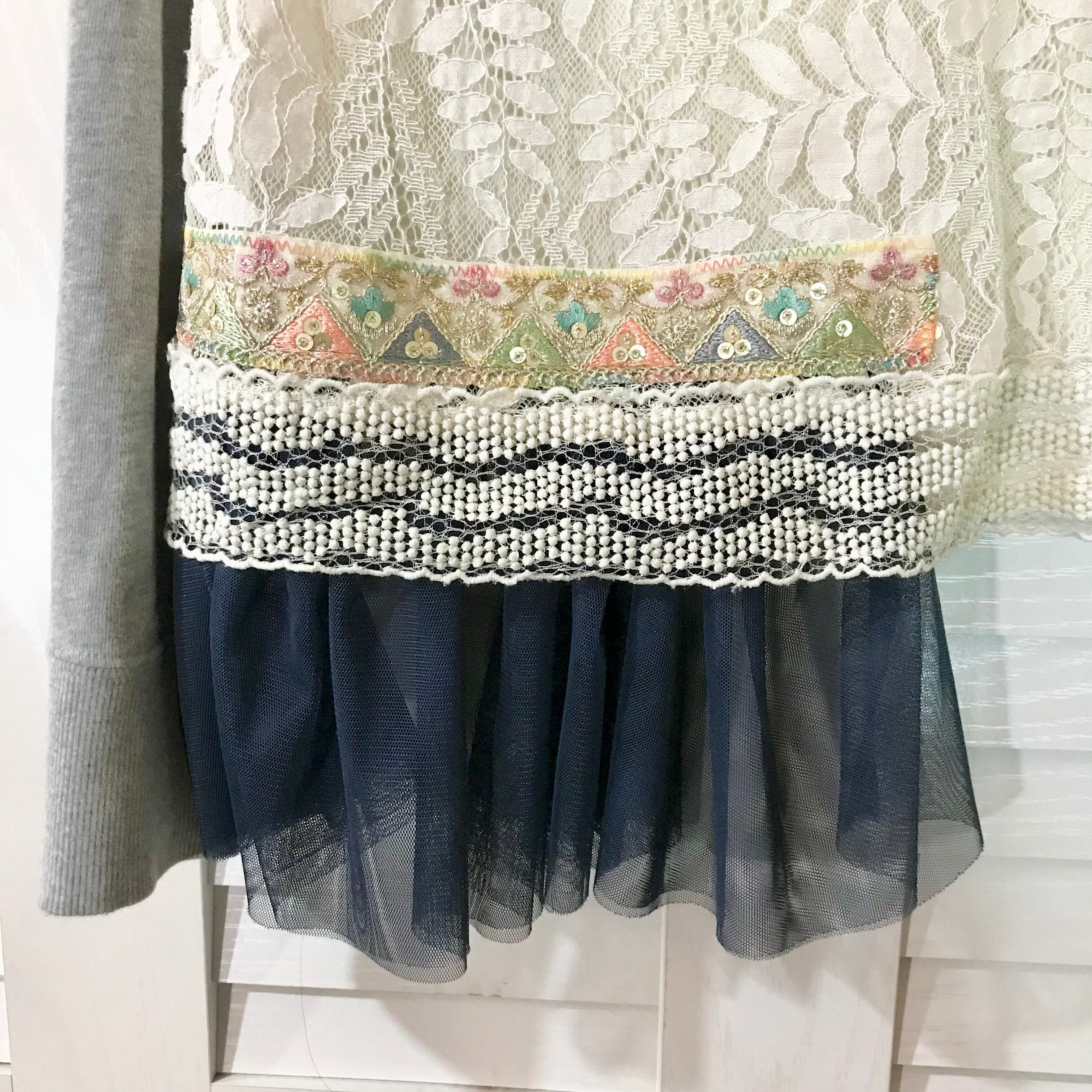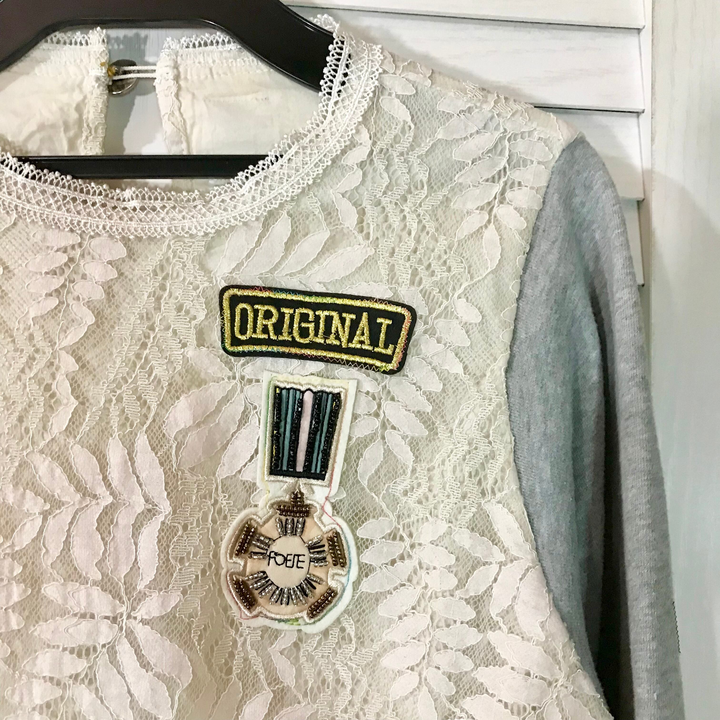 【リメイク1点物】ヴィンテージブラウス×スウェットスリーブトップス
