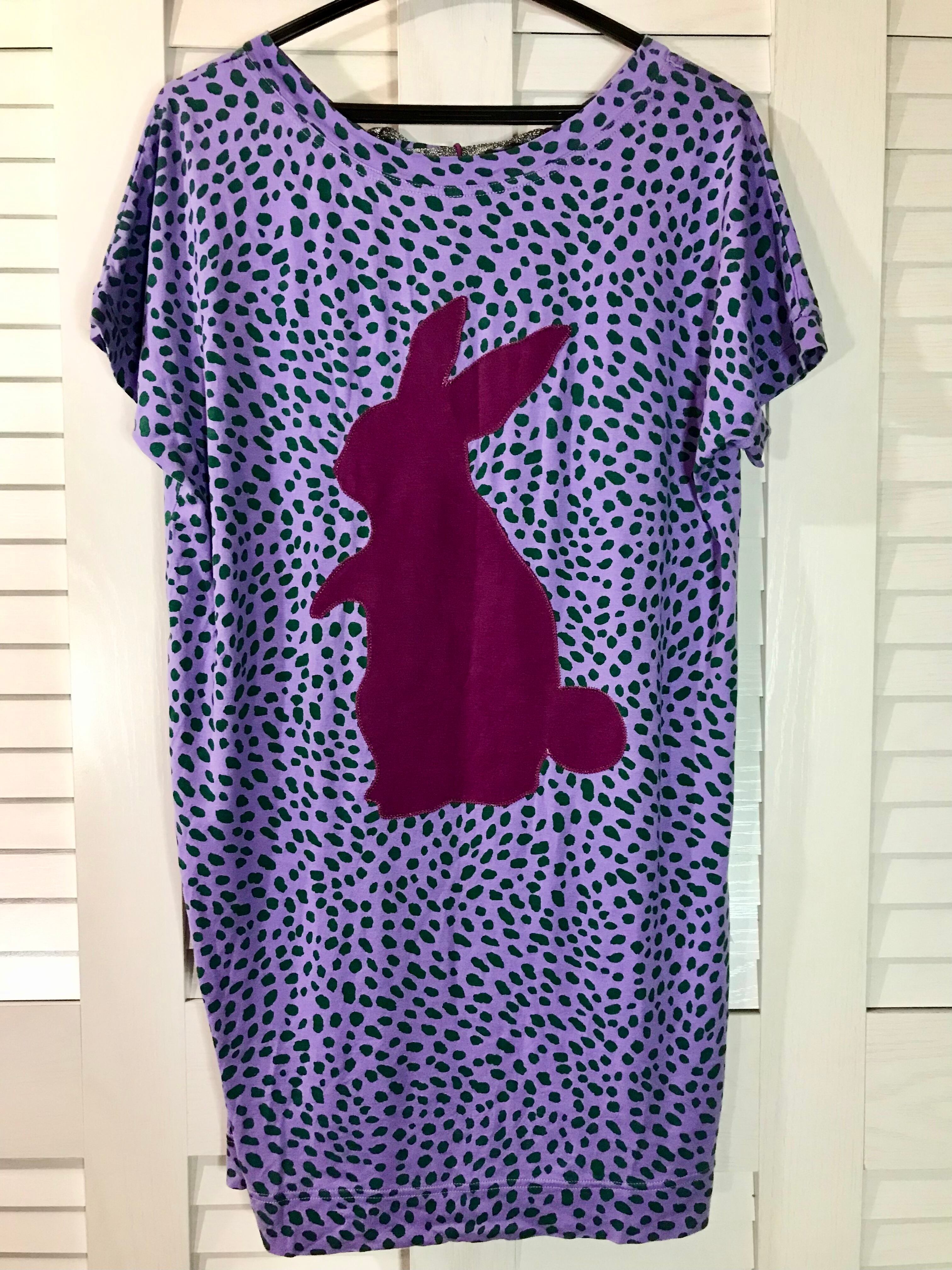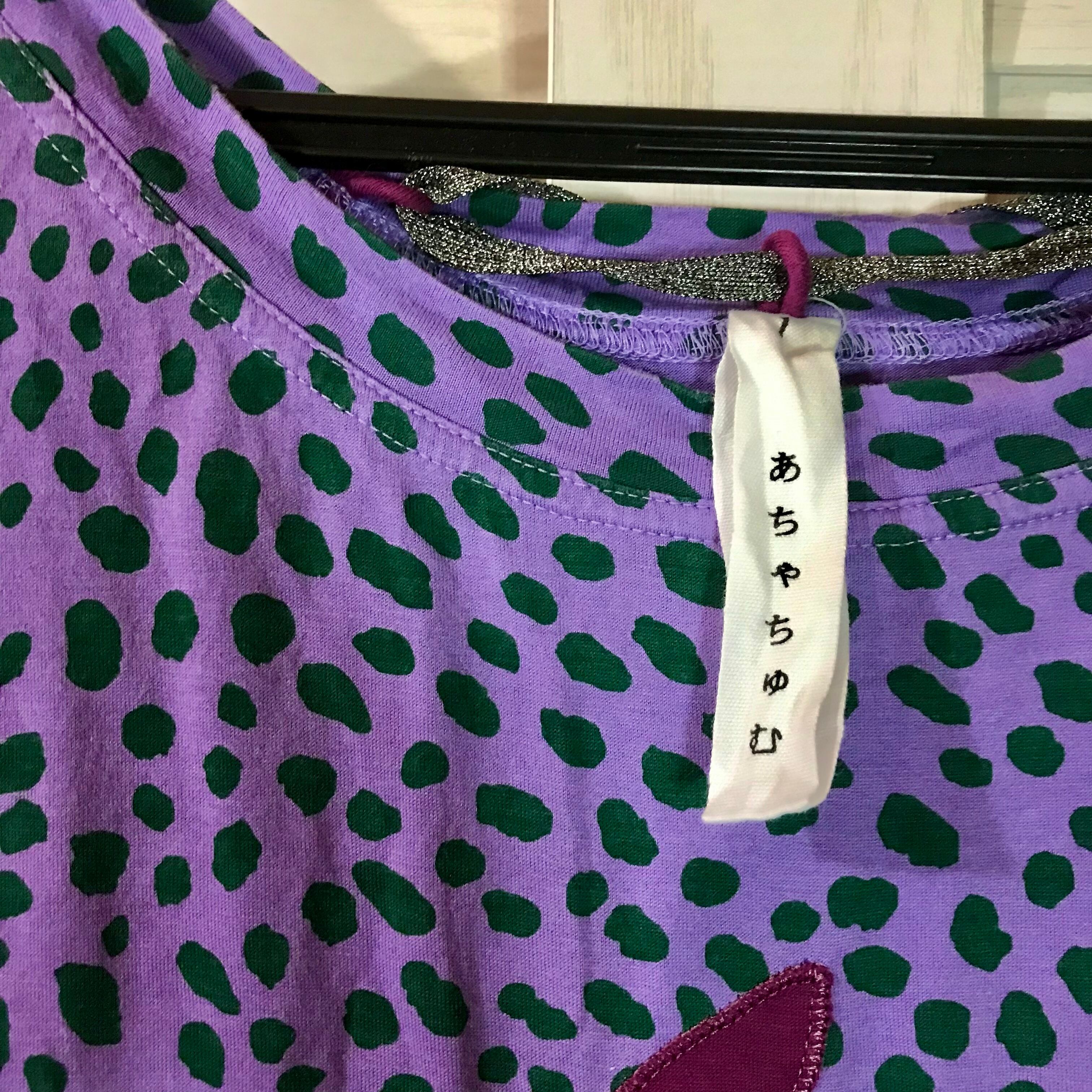 かっぱさん専用◎AHCAHCUM.muchacha うさぎシルエットパッチ グリーン×パープルレオパード カットソーワンピ【ひらがなタグ】