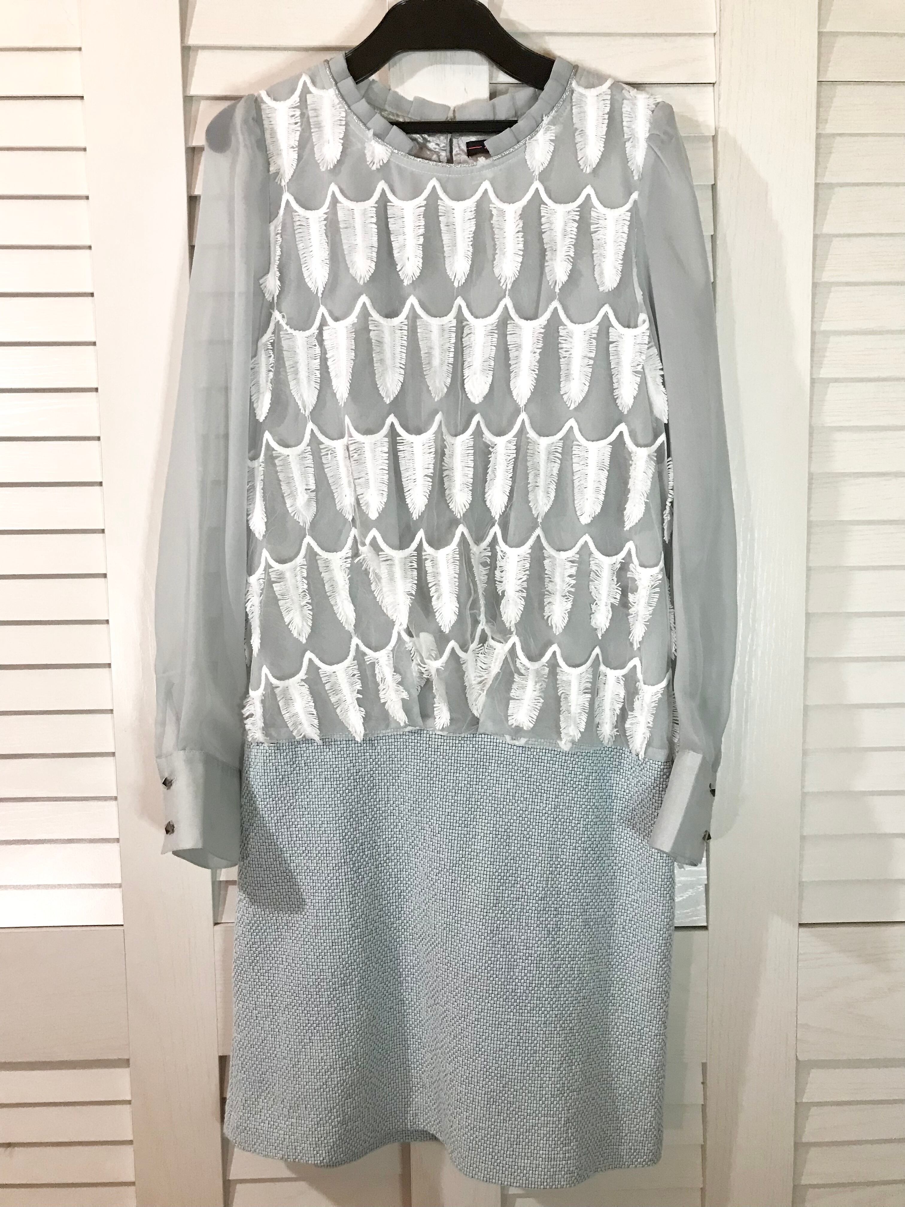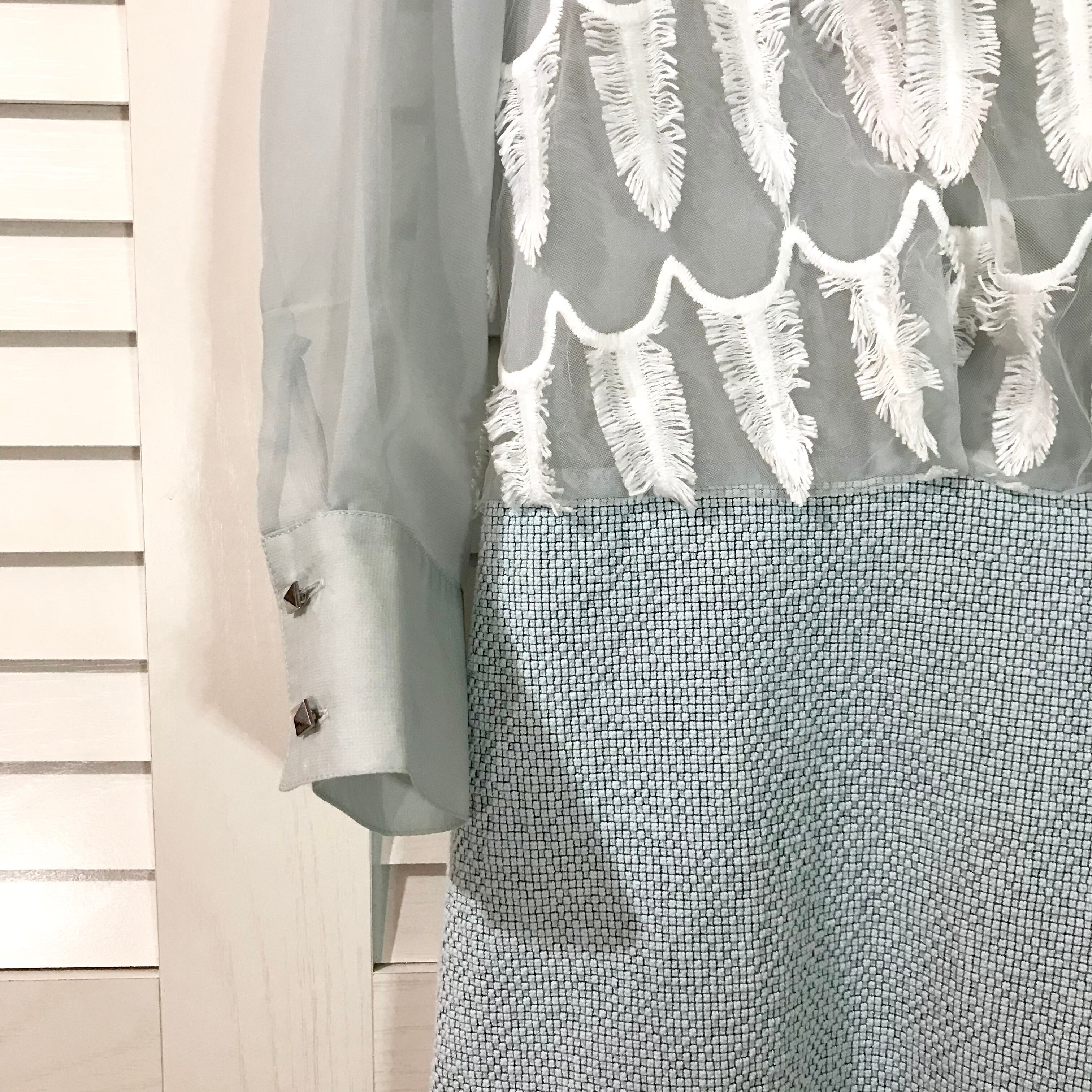 どんぶり1番専用◎2% TOKYO フェザーレースオーガン シアードッキングワンピ サックスブルー