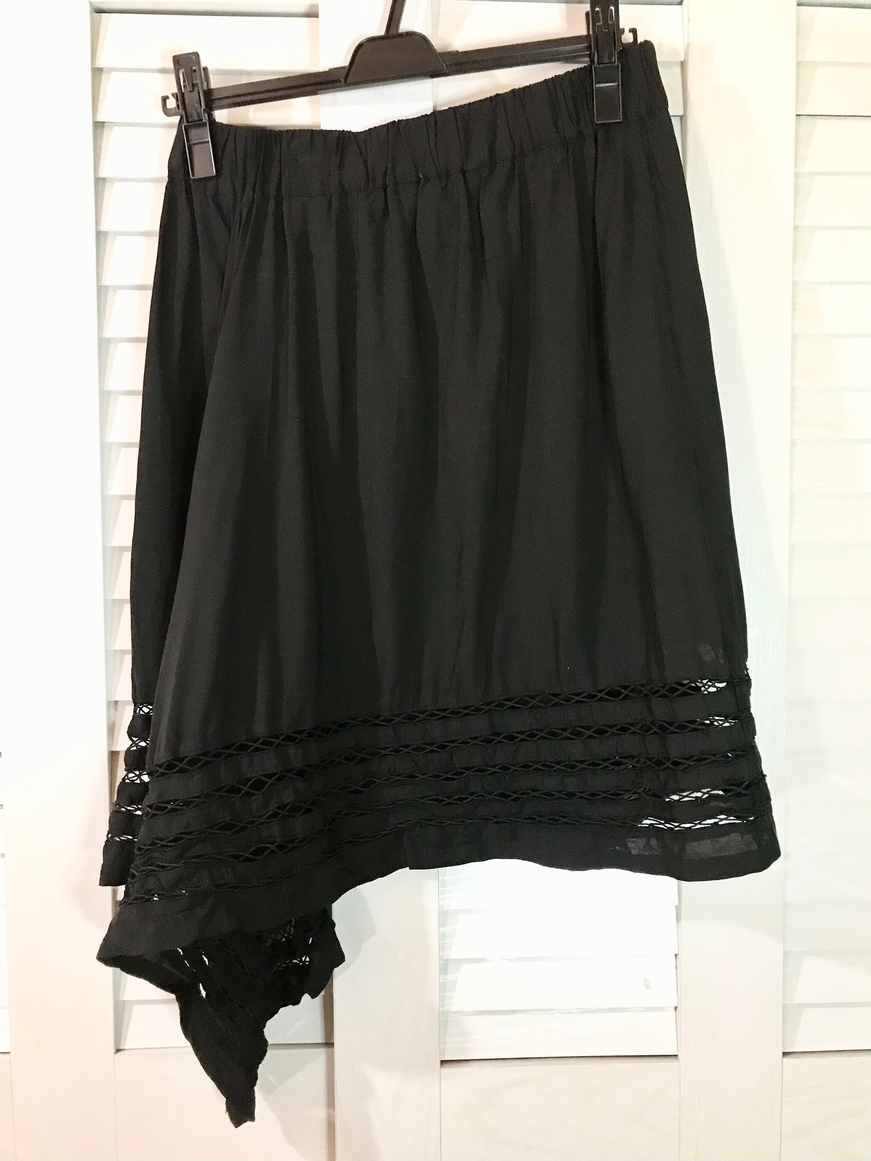 ZUCCa イレギュラーヘム メッシュレースキャプラオーバースカート ブラック