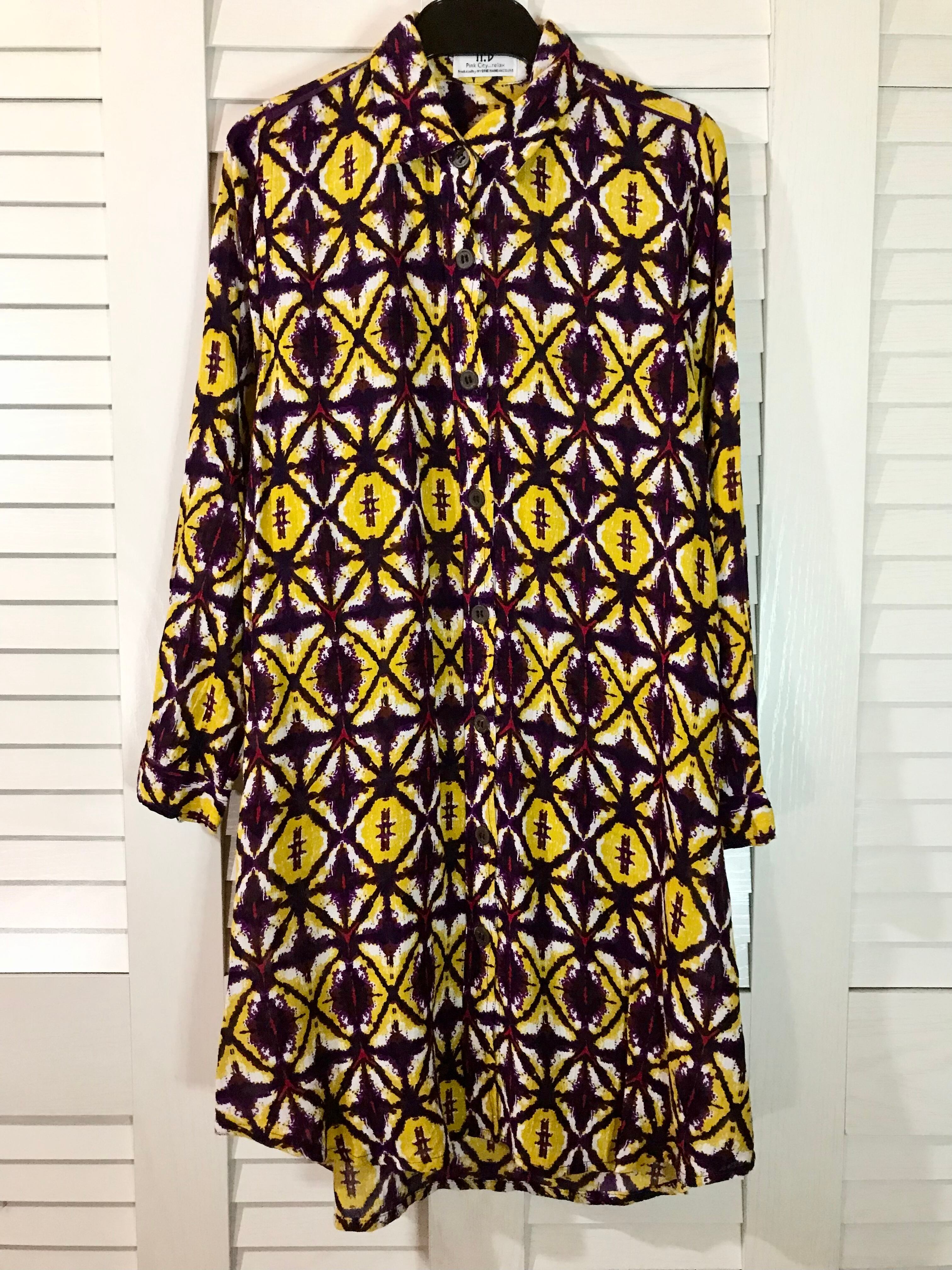h.b ヴィヴィッドカラー アフリカンプリント 楊柳シャツワンピ イエローパープル | お洋服屋さん 『GOKKO』