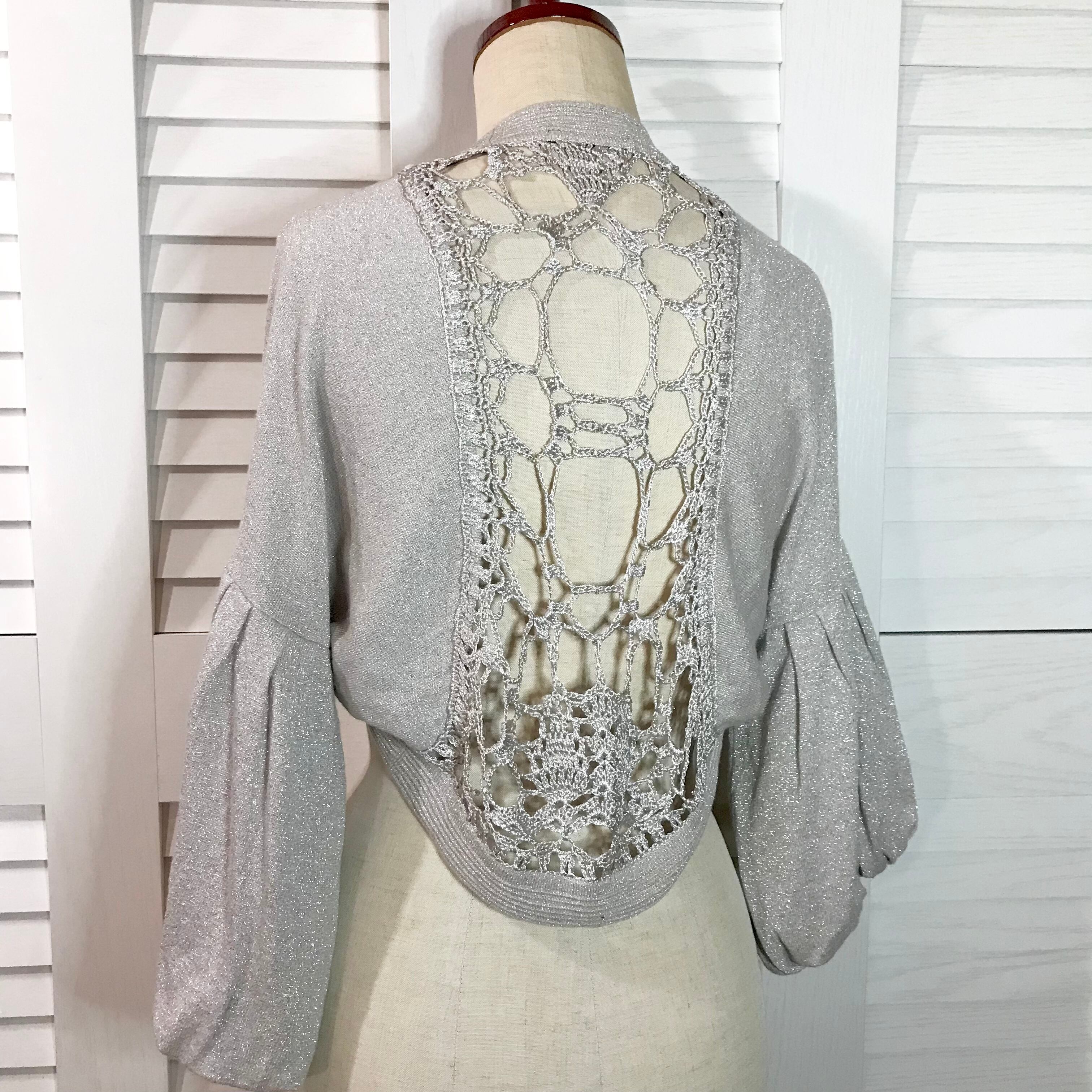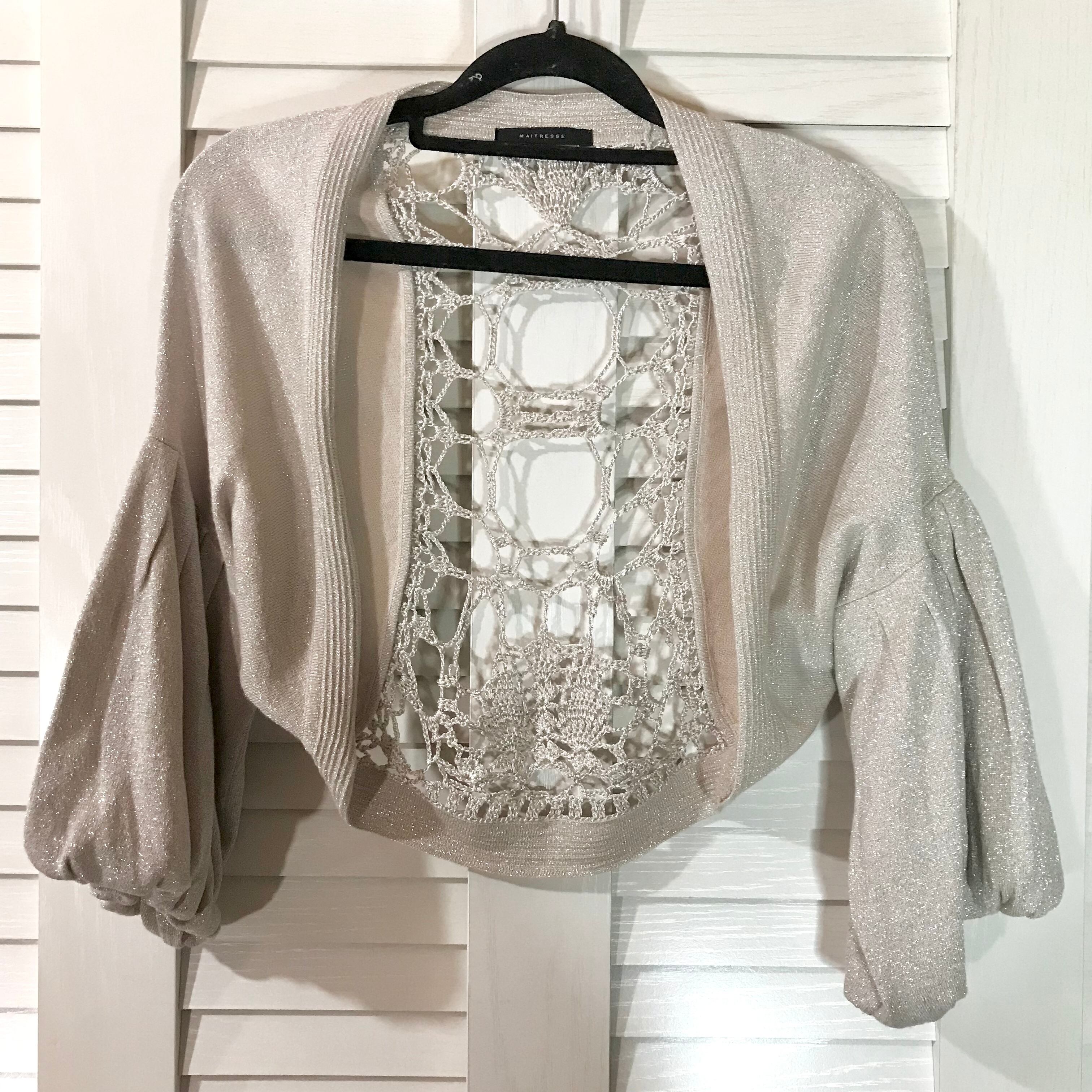 霧沙慈さん専用◎MAITRESSE カギ編みバックレース バルーンスリーブ ラメ入りニットボレロ ライトベージュ