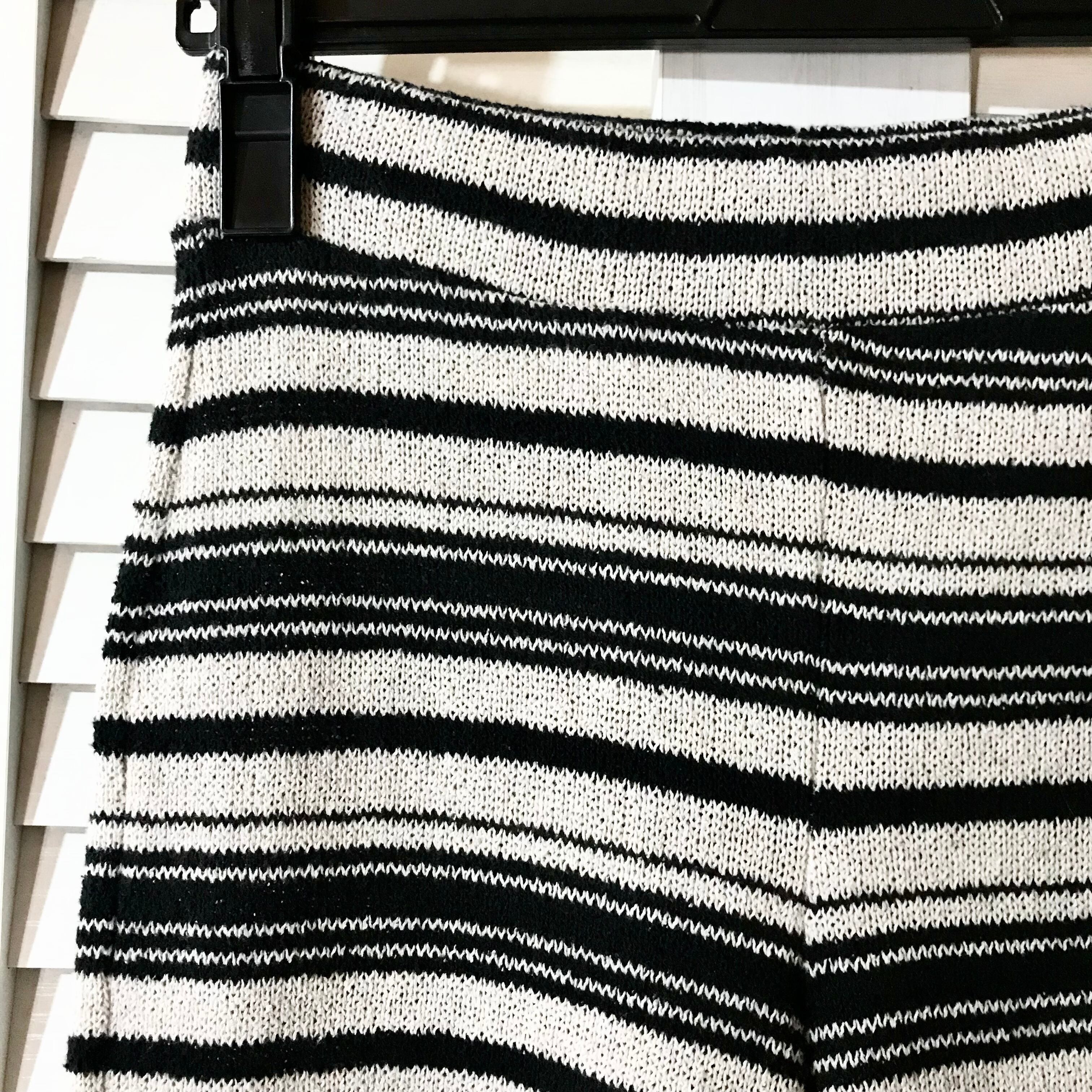 ぽんぽんさん専用◎Bershka ランダムボーダー コットンレーヨンニットパンツ ブーツカット ブラック×ライトベージュ