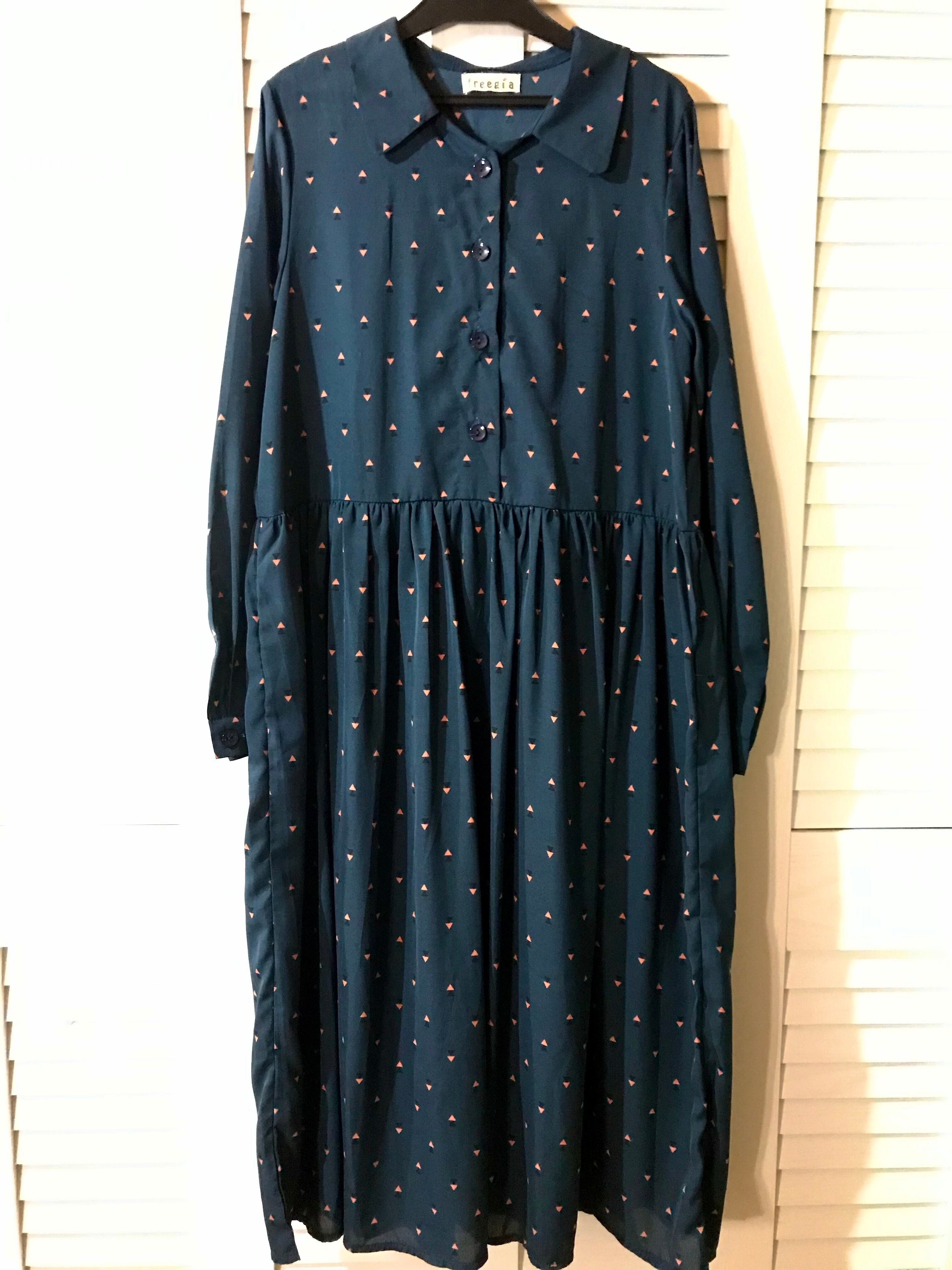 じょーじさん専用◎freegia レトロ柄 ボリュームシャツワンピ ネイビー | お洋服屋さん 『GOKKO』
